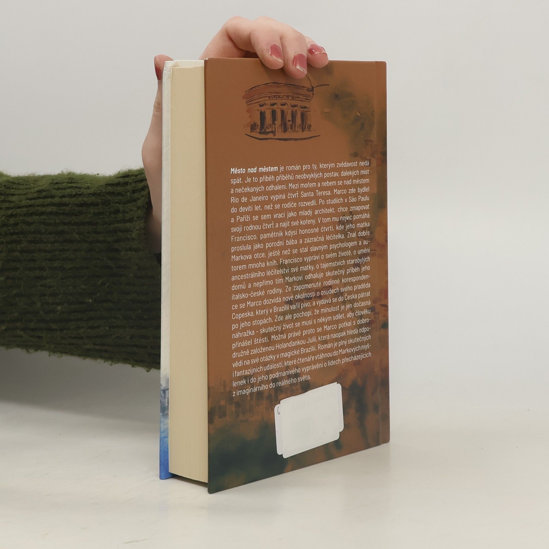 Poutavý román z exotické Brazílie o hledání životního cíle. Lucie Brejšová žila několik let v Sao Paulu. Brazílie na ni silně zapůsobila svou exotikou a přírodní rozmanitostí. Zaujalo ji místní léčitelství a bylinkářství, které je díky bohaté vegetaci značně rozšířené. Z toho mimo jiné čerpala inspiraci pro část svého románu. Jeho hlavní hrdina Marco je architekt památkář a zabývá se záchranou a novým využitím starých staveb. Město nad městem je čtvrť Santa Teresa v Riu de Janeiro, kde žil do svých deseti let, než se rodiče rozvedli. Vrací se sem po dvaceti letech, kdy se rozhoduje o svém dalším životě. Čtvrť Santa Teresa se za tu dobu značně proměnila, stala se ostrůvkem staré koloniální architektury uprostřed výškových betonových staveb. Od místního pamětníka Franciska se dozvídá, jak to bylo s jeho rodiči, jak žily rodiny, které znal z dětství, a také o českých kořenech svého praděda Kopeska. A ještě před svou cestou do Česka se zamiluje do krásné Julie, která přijela z Evropy poznávat Brazílii, a dá nový směr jeho životu.