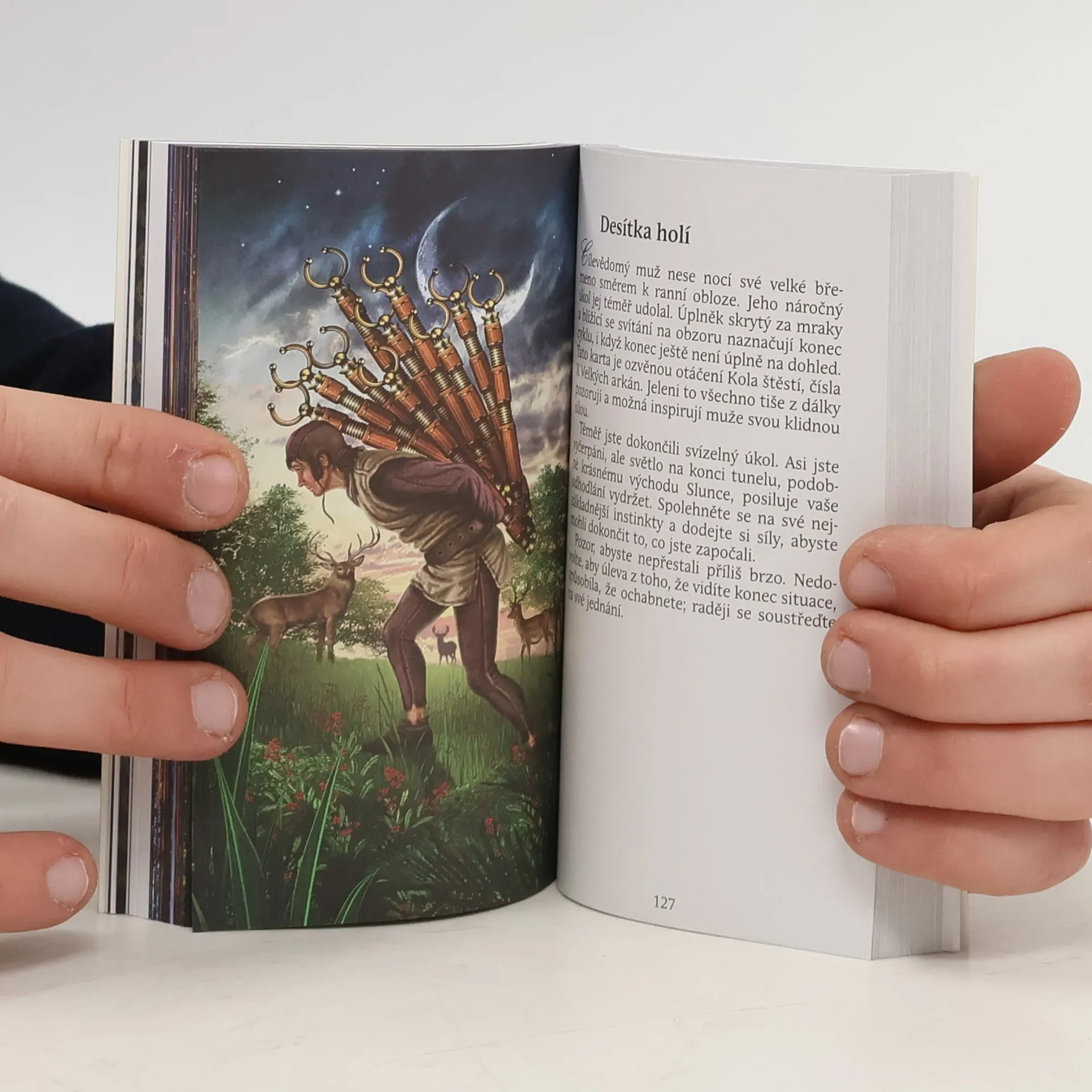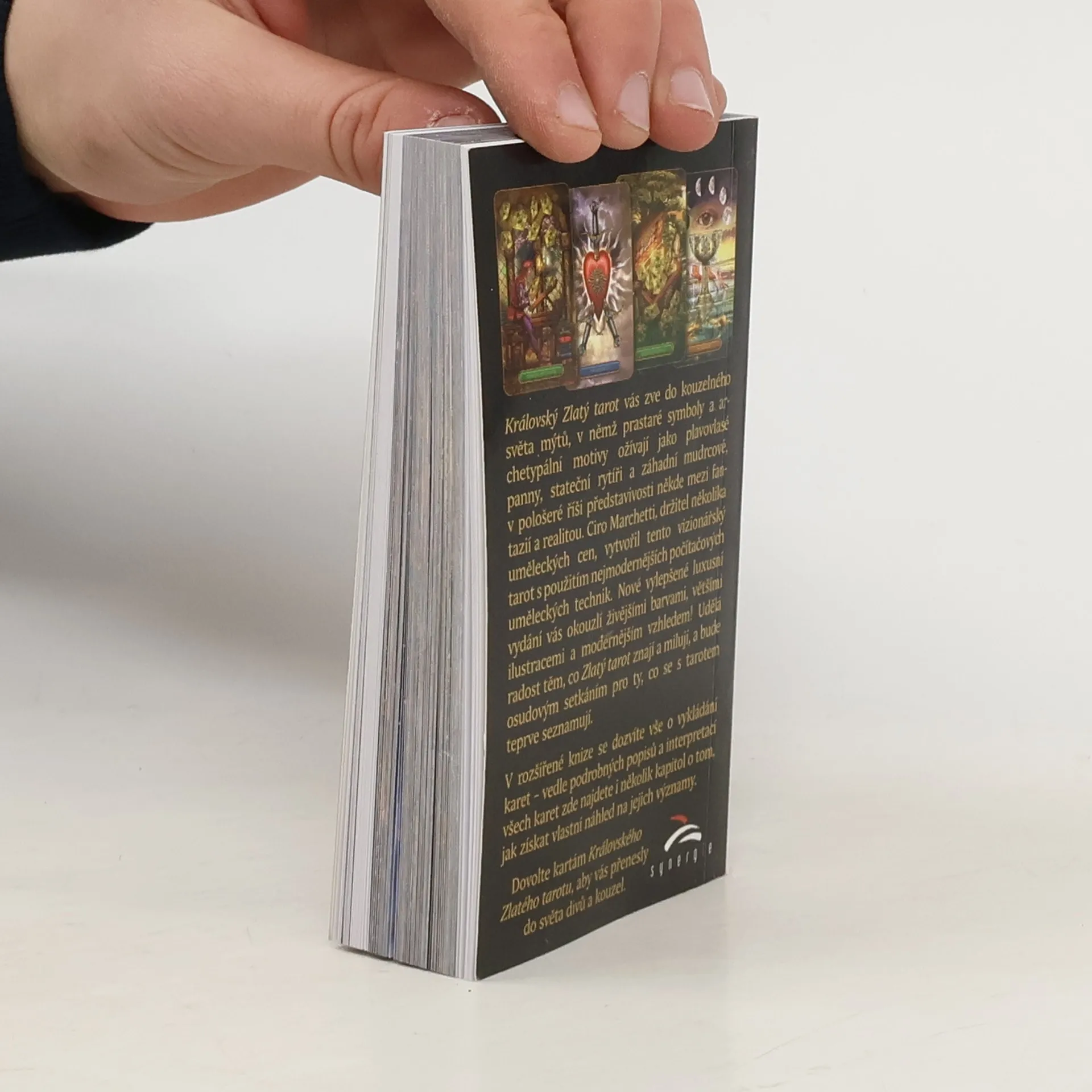 Královský Zlatý tarot vás zve do kouzelného světa mýtů, v němž prastaré symboly a archetypální motivy ožívají jako plavovlasé panny, stateční rytíři a záhadní mudrcové, v pološeré říši představivosti někde mezi fantazií a realitou. Ciro Marchetti, držitel několika uměleckých cen, vytvořil tento vizionářský tarot s použitím nejmodernějších počítačových uměleckých technik. Nové vylepšené luxusní vydání vás okouzlí živějšími barvami, většími ilustracemi a modernějším vzhledem! Udělá radost těm, co Zlatý tarot znají a milují, a bude osudovým setkáním pro ty, co se s tarotem teprve seznamují. Dovolte kartám Královského Zlatého tarotu, aby vás přenesly do světa divů a kouzel.
