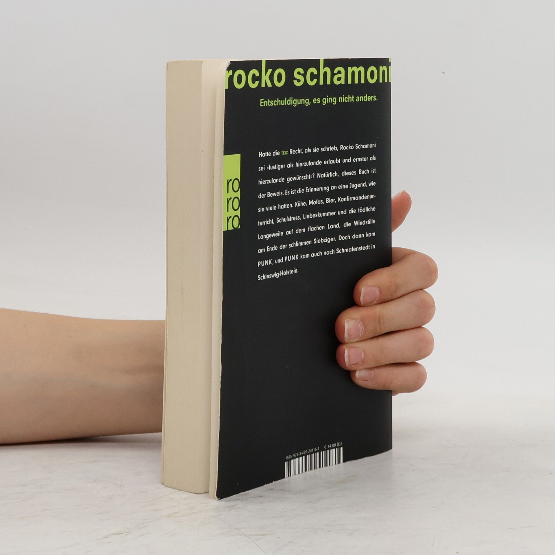 rocko schamoniEntschuldigung, es ging nicht andersHatte die «taz» Recht, als sie schrieb, Rocko Schamoni sei «lustiger als hierzulande erlaubt, und ernster als hierzulande gewünscht»? Natürlich, dieses Buch ist der Beweis. Es ist die Erinnerung an eine Jugend, wie sie viele hatten. Kühe, Mofas, Bier, Konfirmandenunterricht, Schulstress, Liebeskummer und die tödliche Langeweile auf dem flachen Land, die Windstille am Ende der schlimmen Siebziger. Doch dann kam PUNK, und PUNK kam auch nach Schmalenstedt in Schleswig-Holstein.