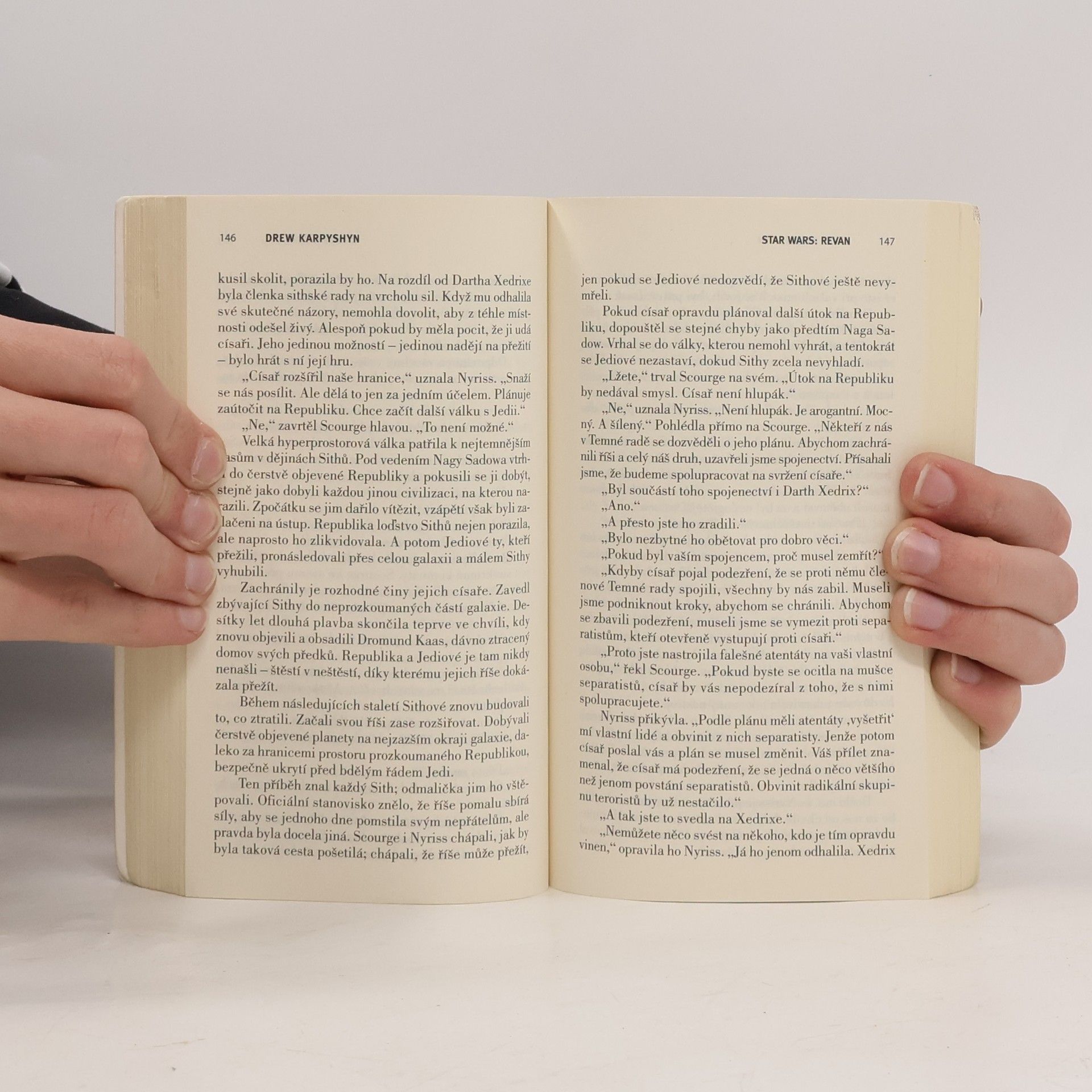 Na okraji galaxie číhá monstrózní zlo, chystající se rozdrtit Republiku. Zastavit ho může jen jeden Jedi, odvržený svým vlastním řádem... Hrdina, zrádce, dobyvatel, zlosyn, spasitel – tím vším byl muž jménem Revan. Z Coruscantu odletěl jako Jedi, rozhodnutý odrazit útok Mandalorianů. Vrátil se jako stoupenec Sithů, odhodlaný zničit Republiku. Rada Jediů vrátila Revanovi původní život, cenou za vykoupení však byla jeho paměť. Zůstaly mu jen noční můry – a hluboký, přetrvávající strach. Co se stalo za Vnějším okrajem? Co mu brání vzpomenout si a zároveň zapomenout? Jistý si může být jen jednou věcí: samotné základy Republiky ohrožuje cosi temného. Revan netuší, jak hrozbu odhalit, natož zneškodnit. Nikdy nečelil mocnějšímu a ďábelštějšímu protivníkovi. Jeho úsilí je dost možná odsouzeno k nezdaru, ale zastavit ho může jen smrt.