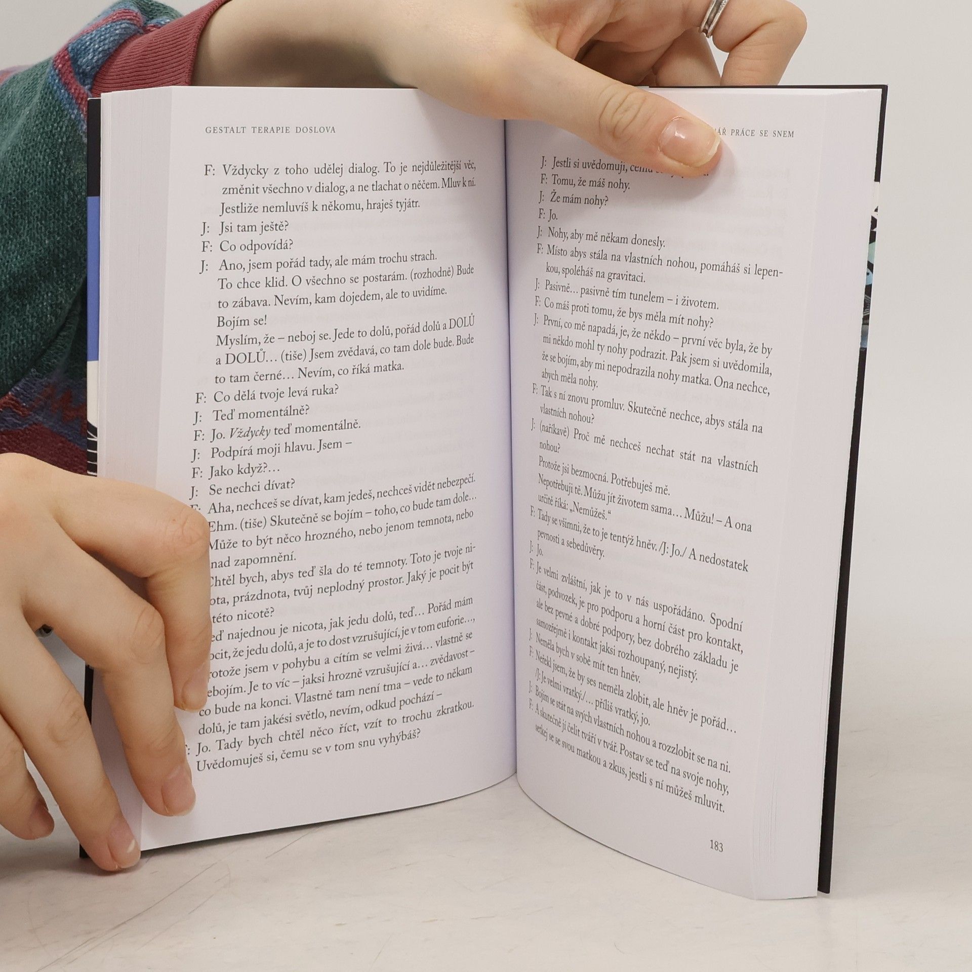 Kniha je souborem přepisů tří workshopů, které se odehrály ve slavném Esalenském institutu v roce 1968. V nich Perls živě demonstruje, co je gestalt: celek lidského prožívání, do něhož se v rámci terapie snažíme opět zahrnout všechny myšlenky, vjemy a emoce, které jsme od sebe dříve oddělili. První část knihy obsahuje čtyři přednášky, v nichž Perls jasně a jednoduše vysvětluje základní myšlenky, které podle něj tvoří filozofii a metodologii gestalt terapie. Následují záznamy semináře na téma snů. Hlavním Perlsovým záměrem zde není sen analyzovat, ale znovu prožít. Poslední část zaznamenává několik po sobě následujících individuálních sezení s jednou osobou a také skupinové setkání. Zde se Perls snaží zachytit další aspekty gestalt terapie, které z předchozích částí nejsou tak patrné. Kniha je základním svědectvím o tom, jak gestalt terapii praktikoval její zakladatel.