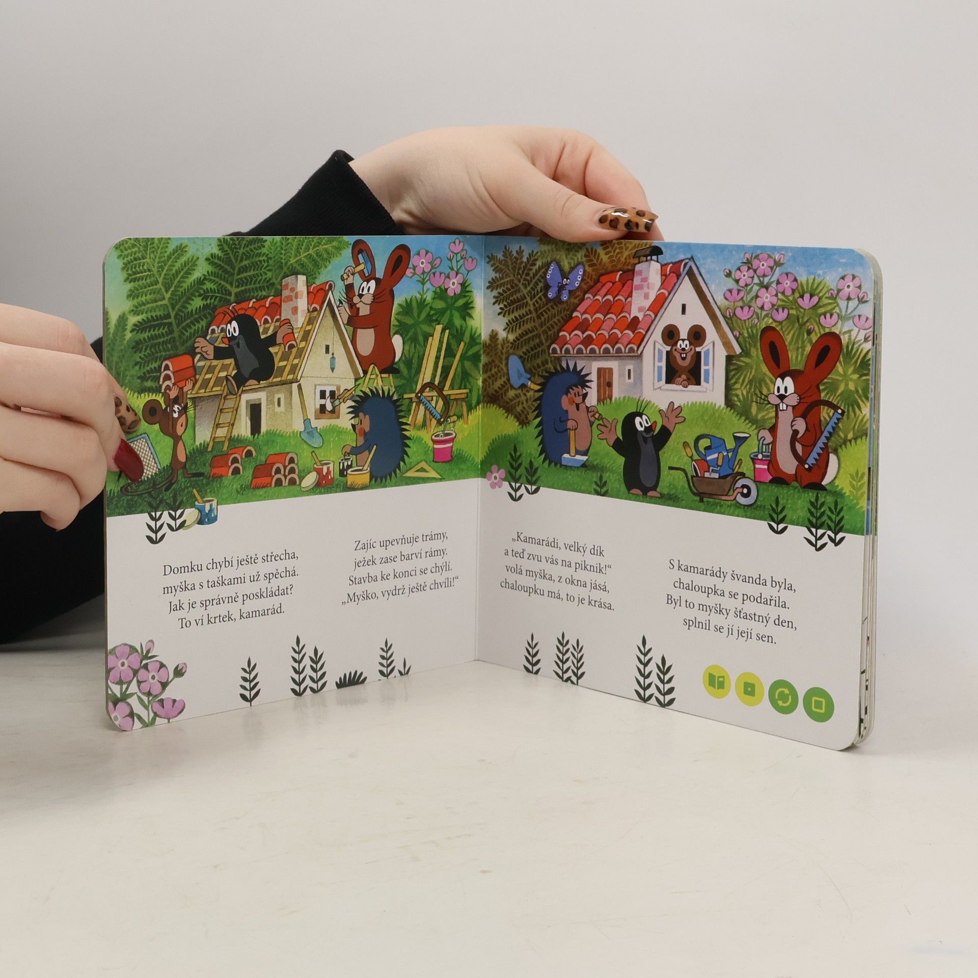Nádherné ilustrace Zdeňka Milera zavedou děti za krtkem a jeho kamarády. Nejprve krtek pomůže se stavbou nového domku, který si vysnila myška, potom zachrání ztraceného zajíce a nakonec se vydá na výlet, kde ho překvapí medvědi. Krtek je zkrátka kamarád, se kterým rozhodně není nuda.