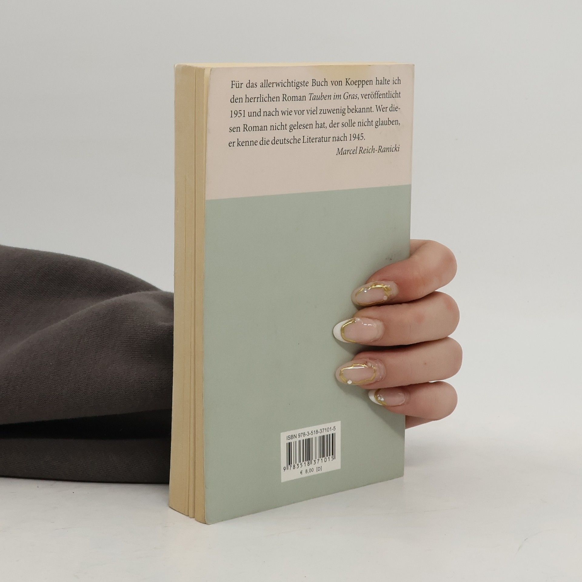 »Koeppens Werk besteht, wie das von allen Schriftstellern, aus Büchern von sehr unterschiedlicher Bedeutung. Ich schätze besonders den frühen Roman Eine unglückliche Liebe, den Roman Der Tod in Rom und das Fragment Jugend. Für das allerwichtigste Buch von Koeppen halte ich den herrlichen Roman Tauben im Gras, veröffentlicht 1951 und nach wie vor viel zu wenig bekannt. Wer diesen Roman nicht gelesen hat, der solle nicht glauben, er kenne die deutsche Literatur nach 1945.« Marcel Reich-Ranicki