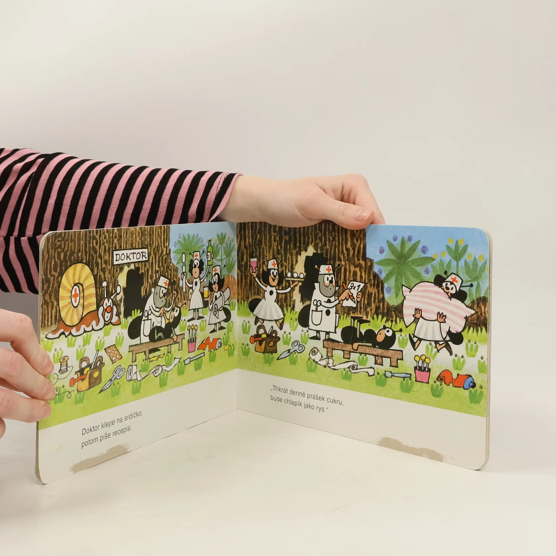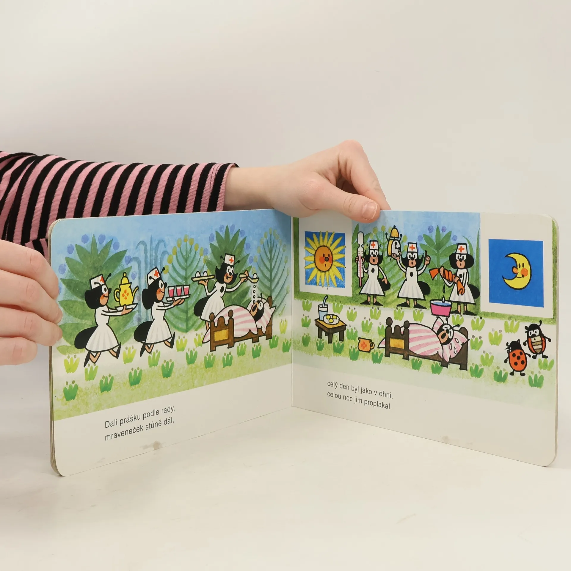 Leporelo obsahuje známou říkanku o nemocném mravenečkovi. Pro předškolní děti.