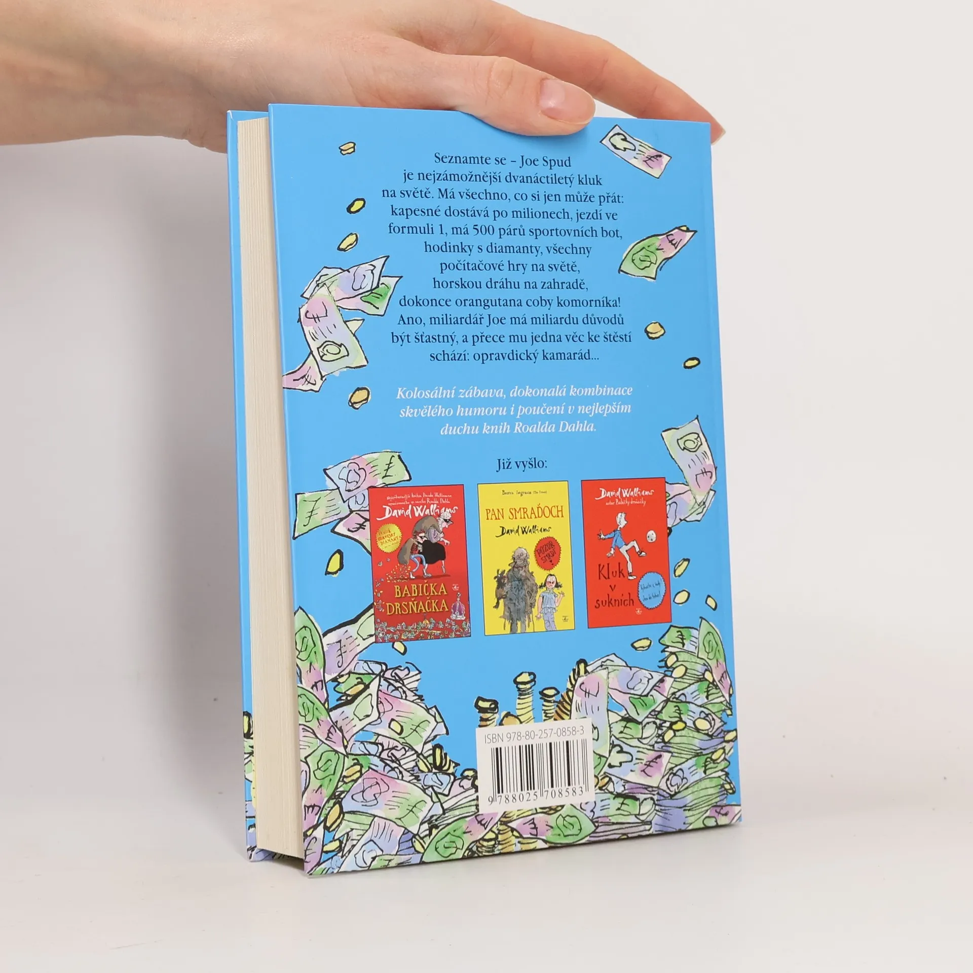 Joe je boháč, přesně řečeno nejbohatší dvanáctiletý kluk v celé Británii. Má všechno, nač si vzpomene: vůz formule 1, kino, pět set párů sportovních bot, orangutana jako sluhu. A přece mu něco důležitého chybí: kamarád… Poprosí proto tátu, aby směl chodit (světe, div se!) do docela obyčejné školy, inkognito! Tím rozpoutá sérii bláznivých situací a neuvěřitelných trapasů, na jejímž konci Joe zjišťuje, že peníze a bohatství ke štěstí nestačí. David Walliams vypráví o věcech, které jsou k pláči, tak brilantně a s takovou dávkou skvělého humoru, že budete plakat smíchy. Právem je kritiky označován za nového Roalda Dahla.