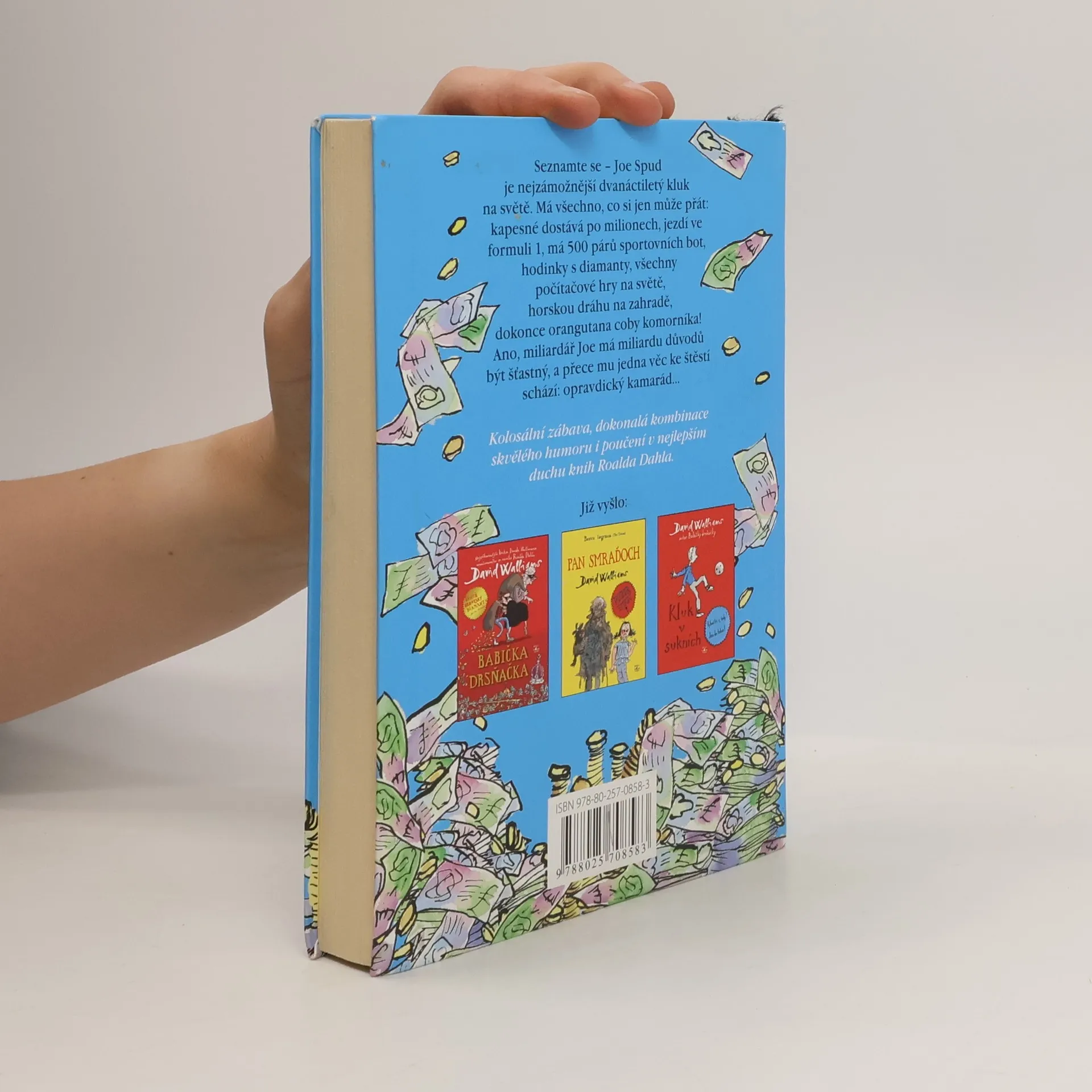 Joe je boháč, přesně řečeno nejbohatší dvanáctiletý kluk v celé Británii. Má všechno, nač si vzpomene: vůz formule 1, kino, pět set párů sportovních bot, orangutana jako sluhu. A přece mu něco důležitého chybí: kamarád… Poprosí proto tátu, aby směl chodit (světe, div se!) do docela obyčejné školy, inkognito! Tím rozpoutá sérii bláznivých situací a neuvěřitelných trapasů, na jejímž konci Joe zjišťuje, že peníze a bohatství ke štěstí nestačí. David Walliams vypráví o věcech, které jsou k pláči, tak brilantně a s takovou dávkou skvělého humoru, že budete plakat smíchy. Právem je kritiky označován za nového Roalda Dahla.