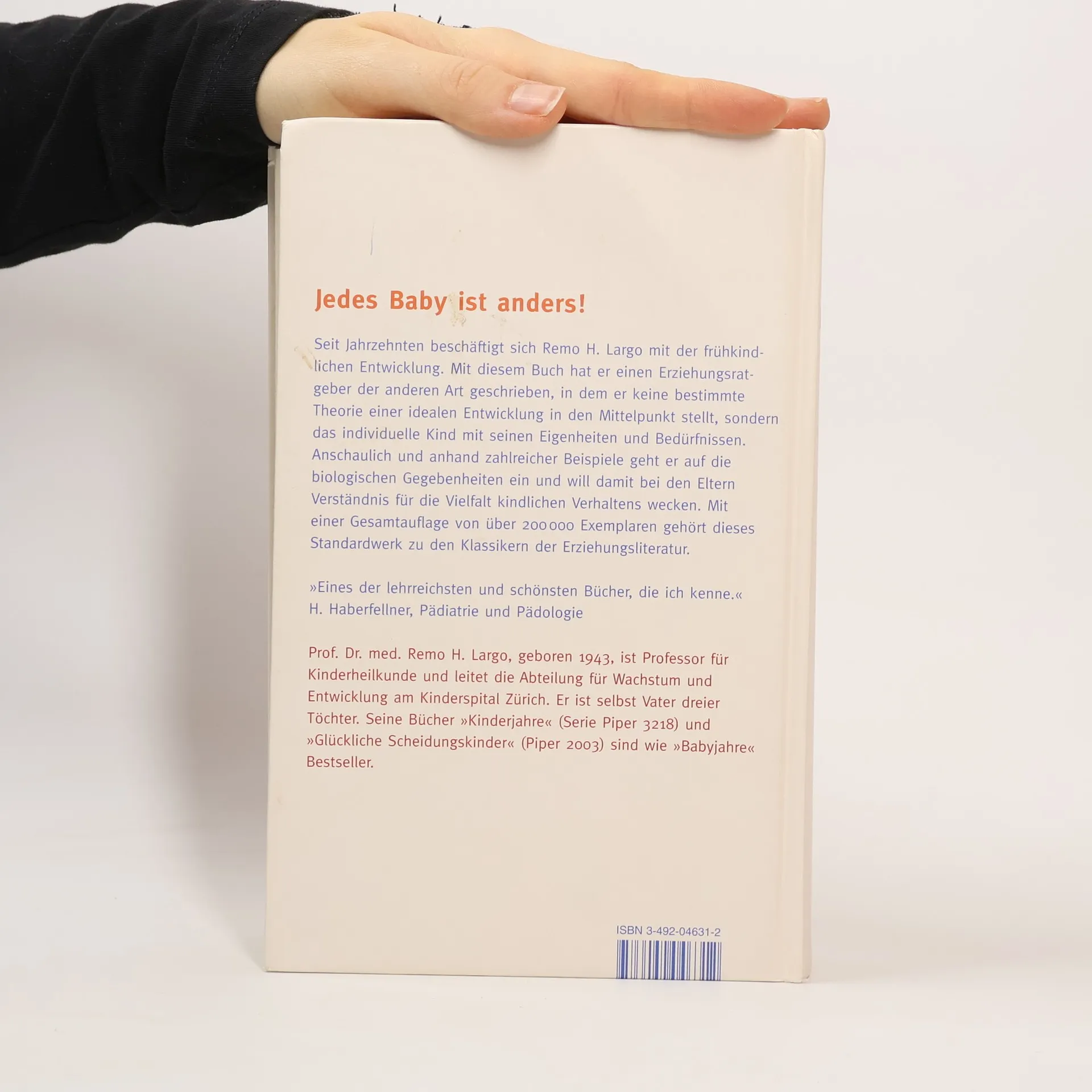 Seit Jahren führen Remo Largos Bücher die Longsellerlisten an, wird Auflage um Auflage von 'Babyjahre' ausgeliefert. Das Erziehungsbuch des renommierten Schweizer Kinderarztes über die erste Zeit mit dem Baby ist längst ein Klassiker und gehört als das einzige Buch, das Eltern wirklich brauchen, zu jeder Erstausstattung. So vertrauen Hunderttausende Eltern und Großeltern auf Largos Konzept von der Einmaligkeit jedes Kindes und seiner individuellen Entwicklung. Jetzt hat Largo sein Standardwerk komplett überarbeitet, auch in Sachen Kinderbetreuung und Ernährung um die jüngsten Ergebnisse der Forschung erweitert, sowie die gesamte Ausgabe mit neuen Farbbildern und Grafiken ausgestattet.