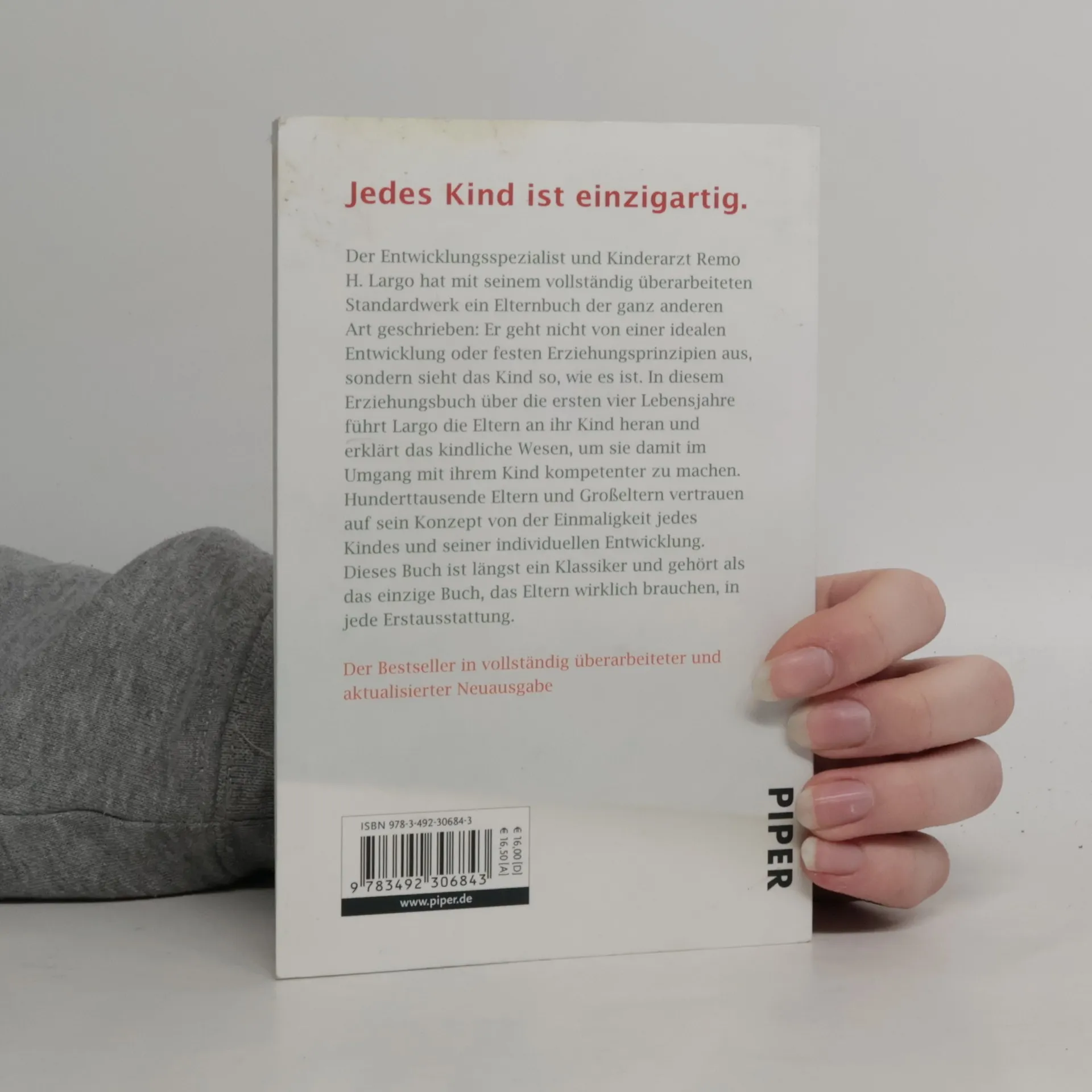 Jedes Kind ist einzigartig – dieser Erziehungsratgeber richtet sich an alle, die eine kindgerechte Erziehung anstreben. Der renommierte Kinderarzt Remo H. Largo hat mit seinen Büchern über Jahre die Bestsellerlisten im Bereich Erziehung angeführt. Er vermittelt Eltern, wie sie ihr Baby besser verstehen und gibt wertvolle Tipps zu wichtigen Erziehungsfragen. Largo erklärt die frühkindliche Entwicklung der ersten vier Lebensjahre und beleuchtet die Vielfalt kindlichen Verhaltens. Sein Konzept orientiert sich an der Spielbreite gesunder Kinder und nicht an Normvorstellungen. Förderung bedeutet für ihn, eine Umgebung zu schaffen, in der das Kind selbstbestimmt wachsen kann. Daher vertrauen Hunderttausende Eltern auf Largos Ansatz, der die Einmaligkeit jedes Kindes betont. Das Buch ist ein unverzichtbarer Begleiter für die prägendsten Jahre im Leben und gilt als Klassiker. Die neueste Ausgabe wurde umfassend aktualisiert, um den neuesten Erkenntnissen in der Kindererziehung gerecht zu werden. Verständliche Erklärungen helfen Eltern, die Bedürfnisse ihres Babys und Kleinkinds besser zu erkennen und darauf einzugehen. Ob als Geschenk zur Geburt oder Taufe – dieses Buch bleibt über Jahre hinweg wertvoll und bietet Eltern die Unterstützung, die sie benötigen.