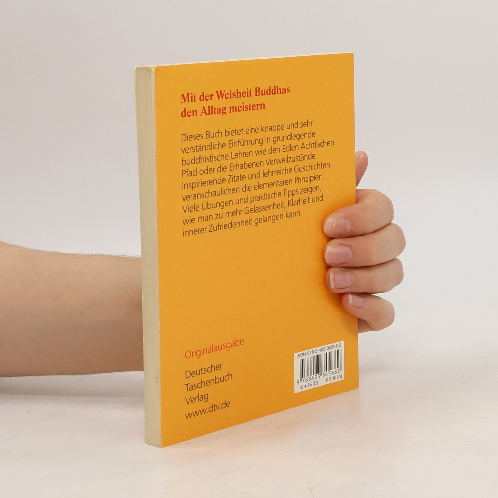 Buddhas Lehren für den Alltag. Dieser kleine Ratgeber vermittelt grundlegende buddhistische Lehren auf einfache, verständliche Weise und bietet Inspiration sowie konkrete Hilfe für den Alltag. Lehrreiche Geschichten und kurze Zitate veranschaulichen die elementaren buddhistischen Prinzipien. Darüber hinaus zeigen viele praktische Ratschläge und Übungen, wie man gelassen »buddhistisch« im Alltag reagieren kann.