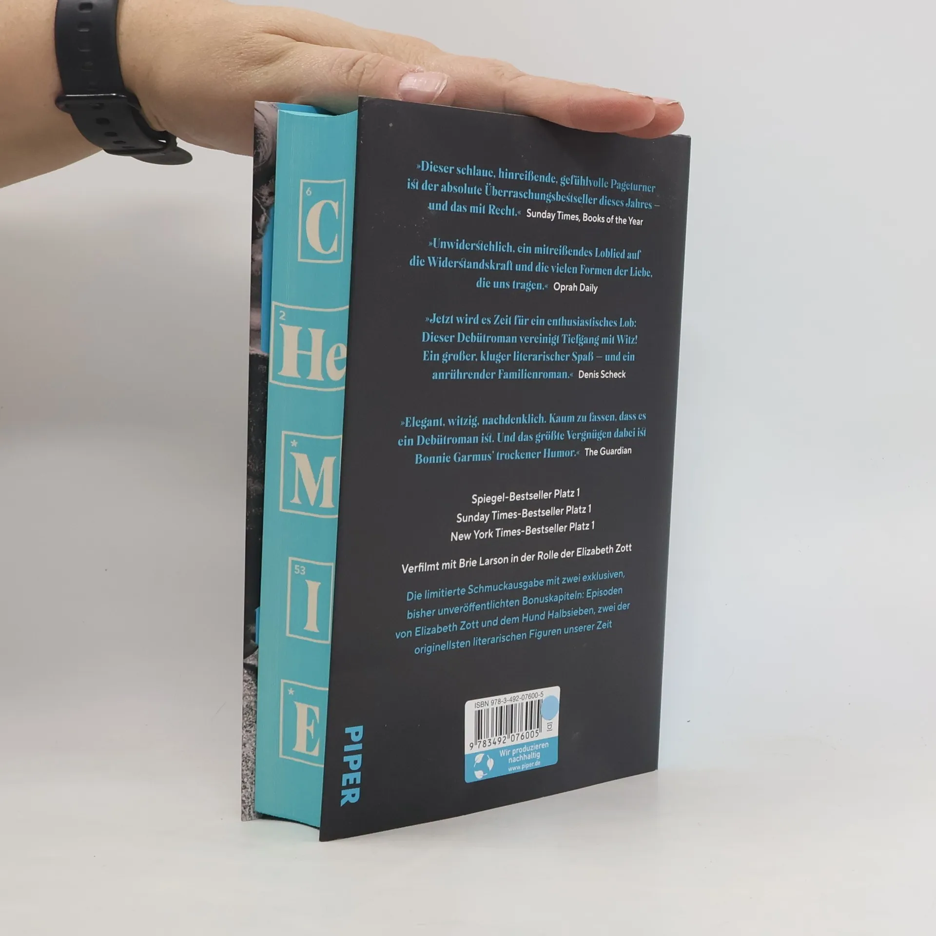 »Jetzt wird es Zeit für ein enthusiastisches Lob: Dieser Debütroman vereinigt Tiefgang mit Witz! Ein großer, kluger literarischer Spaß – und ein anrührender Familienroman.« Denis Scheck »In Elizabeth Zott verliebt man sich total. Sie ist so toll und natürlich dargestellt, dass ich sie sogar gegoogelt habe: Die muss es doch wirklich geben, habe ich gedacht! Lange habe ich nicht ein so unterhaltendes, witziges und kluges Buch gelesen wie dieses.« Elke Heidenreich »Klug, charmant und warmherzig. Eine wunderbare Protagonistin, das Thema Emanzipation und Selbstbestimmung, tragische Entwicklungen und ein wirklich mitreißender Plot.« BuchMarkt Online Elizabeth Zott ist eine Frau mit dem unverkennbaren Auftreten eines Menschen, der nicht durchschnittlich ist und es nie sein wird. Doch es ist 1961, und die Frauen tragen Hemdblusenkleider und treten Gartenvereinen bei. Niemand traut ihnen zu, Chemikerin zu werden. Außer Calvin Evans, dem einsamen, brillanten Nobelpreiskandidaten, der sich ausgerechnet in Elizabeths Verstand verliebt. Aber auch 1961 geht das Leben eigene Wege. Und so findet sich eine alleinerziehende Elizabeth Zott bald in der TV-Show »Essen um sechs« wieder. Doch für sie ist Kochen Chemie. Und Chemie bedeutet Veränderung der Zustände ... »Eine Frage der Chemie« stürmte auf Anhieb die Bestsellerlisten und hat seit seiner Publikation im Frühjahr 2022 weltweit Millionen von Leser: innen begeistert. Bonnie Garmus' Schlüssel zum Erfolg für ihr hinreißend erzähltes Buch lässt sich in zwei Worten zusammenfassen: Elizabeth Zott. Sprühend vor Originalität, Sprachwitz und mit ihrer außergewöhnlichen Heldin gelingt es Bonnie Garmus, unseren Verstand und unser Herz zu erobern – und das nicht zuletzt mit einem Hund namens Halbsieben, der Elizabeth in ihren dunkelsten Stunden beisteht und den Roman mit großer, heiterer Lebensweisheit erfüllt. Ihnen beiden sind auch die beiden Bonuskapitel gewidmet, die diese limitierte Schmuckausgabe abrunden. Aus dem Englischen von Ulrike Wasel und Klaus Timmermann, dem Übersetzerduo von Delia Owens' »Der Gesang der Flusskrebse« »So einen unterhaltsamen und zugleich blitzgescheiten Roman habe ich schon lange nicht mehr gelesen!« Kölner Stadt-Anzeiger Auszeichnungen und Preise: Lieblingsbuch der Unabhängigen, Spiegel-Jahresbestseller 2022, British Book Awards Author of the Year 2023, Sunday Times Best Fiction Books of 2022, The New York Times 100 Notable Books of 2022, Barnes & Noble Book of the Year 2022, Waterstones Author of the Year 2022, Hay Festival Book of the Year 2022