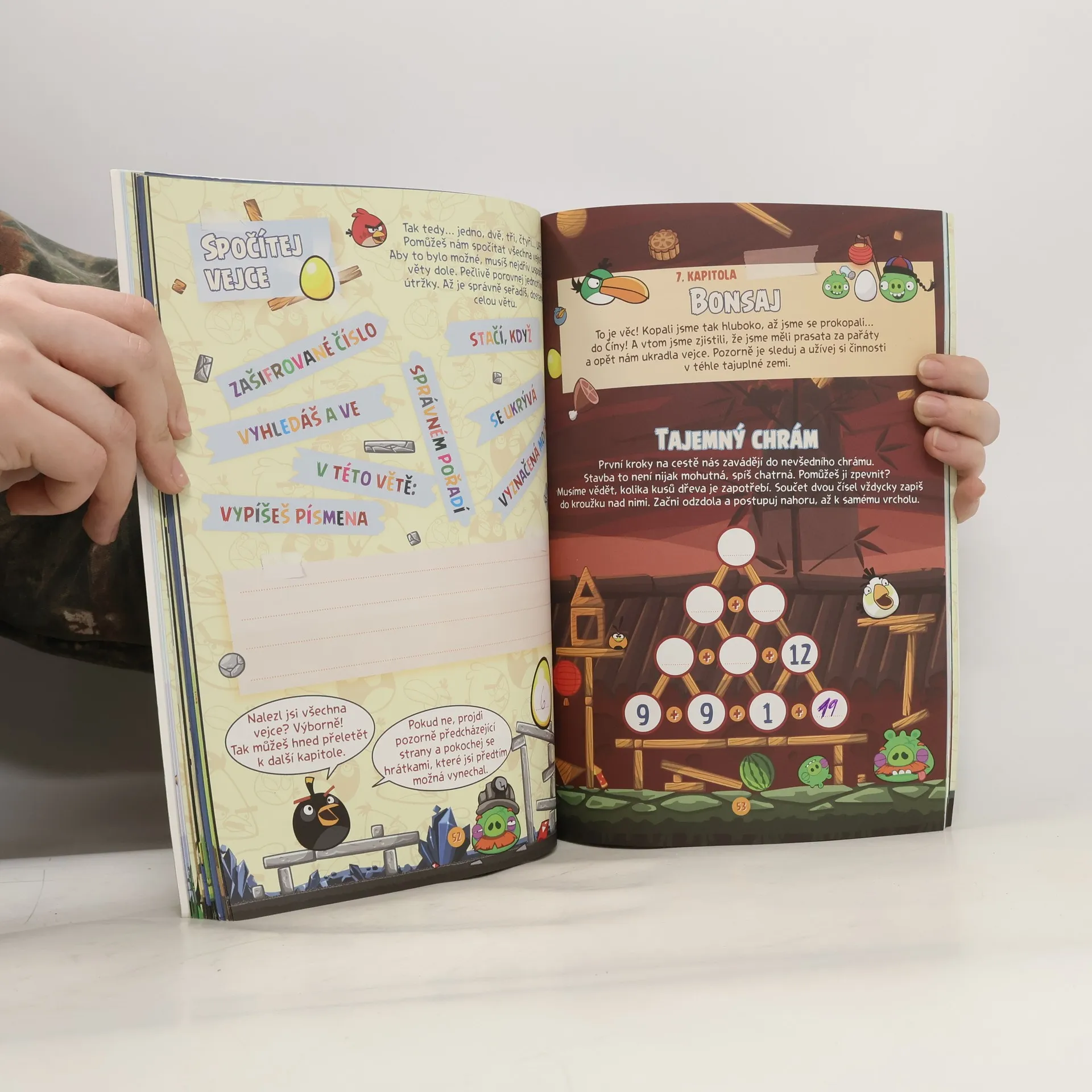 My, Reptáci, vyhlašujeme slavnostně svatou válku prasatům! Ve jménu šunky, do nich! Pomůžeš nám zbavit se všech odporných vepřisluhovačů? Ale pozor! Nebude to snadné. Ti zelení ničemové jsou schopni učunit cokoliv, aby nám ukradli naše vejce. Na programu jsou bludiště, sudoku, šifrované zprávy, postřehové hry a další. Tak jen do toho, zaženeme nudu jako prasata do ohrady! V knize jsou roztroušena zlatá vejce. Na konci každé kapitoly si můžeš v jedné hře ověřit, zda jsi je našel všechna. Proto měj oči na stopkách, aby ti žádné vejce neuniklo.