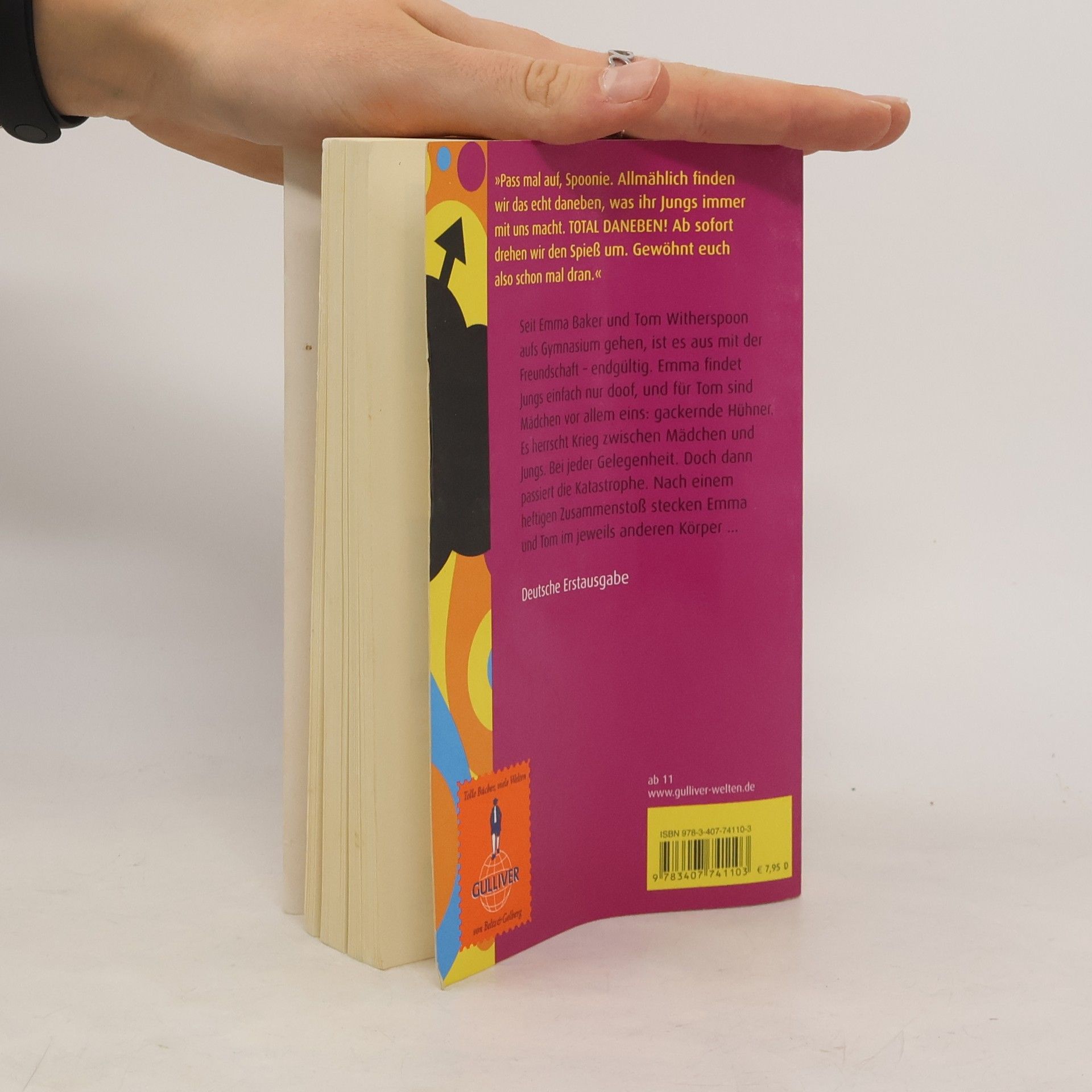 Einmal hin, einmal her – Mädchen oder Junge sein, das ist nicht schwer? Seit Emma und Tom aufs Gymnasium gehen, ist es aus mit der Freundschaft – endgültig. Es wäre nämlich total uncool, wenn Tom mit einem Mädchen ... und Emma mit einem Jungen ... Doch dann steckt Emma auf einmal in Toms Körper und Tom findet sich in Emmas Körper wieder. Ein mehrtägiger Spießrutenlauf beginnt, denn niemand darf was merken, weder Toms alberne Freunde, noch die zickigen Grrzillas, noch die Eltern und Lehrer ... Mit komödiantischer Leichtigkeit spielt der Autor mit Rollenklischees und Vorurteilen. Der Leser schlüpft mal in die eine, mal in die andere Rolle – und amüsiert sich. Bis der Spuk ein Ende hat.