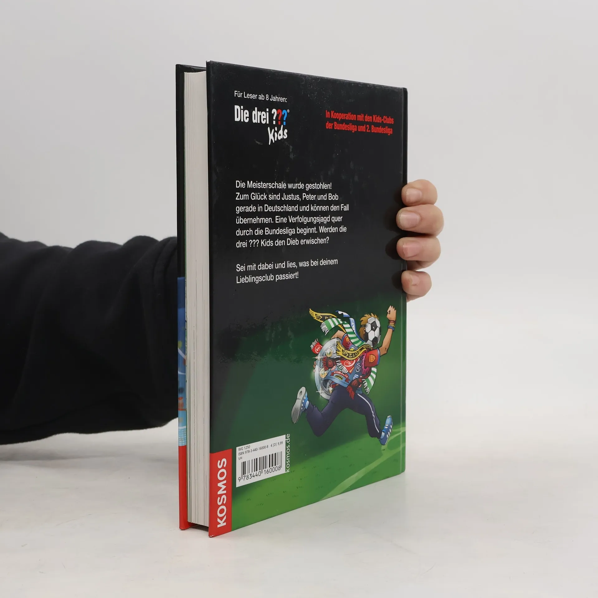 Justus, Peter und Bob machen gemeinsam mit Tante Mathilda und Onkel Titus eine Deutschlandreise. Dabei geraten sie mitten in einen Fall, der sie zu 27 Vereinen der Bundesliga fü Die Meisterschale wurde gestohlen! Glücklicherweise sind Justus, Peter und Bob gerade vor Ort und können den Fall übernehmen. Der wahnsinnige Dieb jagt die drei ??? Kids quer durch die Bundesliga, vom Hamburger SV bis zum FC Bayern, von Eintracht Braunschweig bis zum VfB Stuttgart. In insgesamt 27 Fußballclubs müssen die Kult-Detektive vor Ort ermitteln. Werden sie den dreisten Dieb erwischen?Bundesliga club logos and DFL logos are protected trademarks of the respective clubs/organisations and are used with the kind permission of the respective owners. Manufactured under license from the DFL/Ligaverband in sole responsibility of Franckh-Kosmos Verlags-GmbH & Co. KG