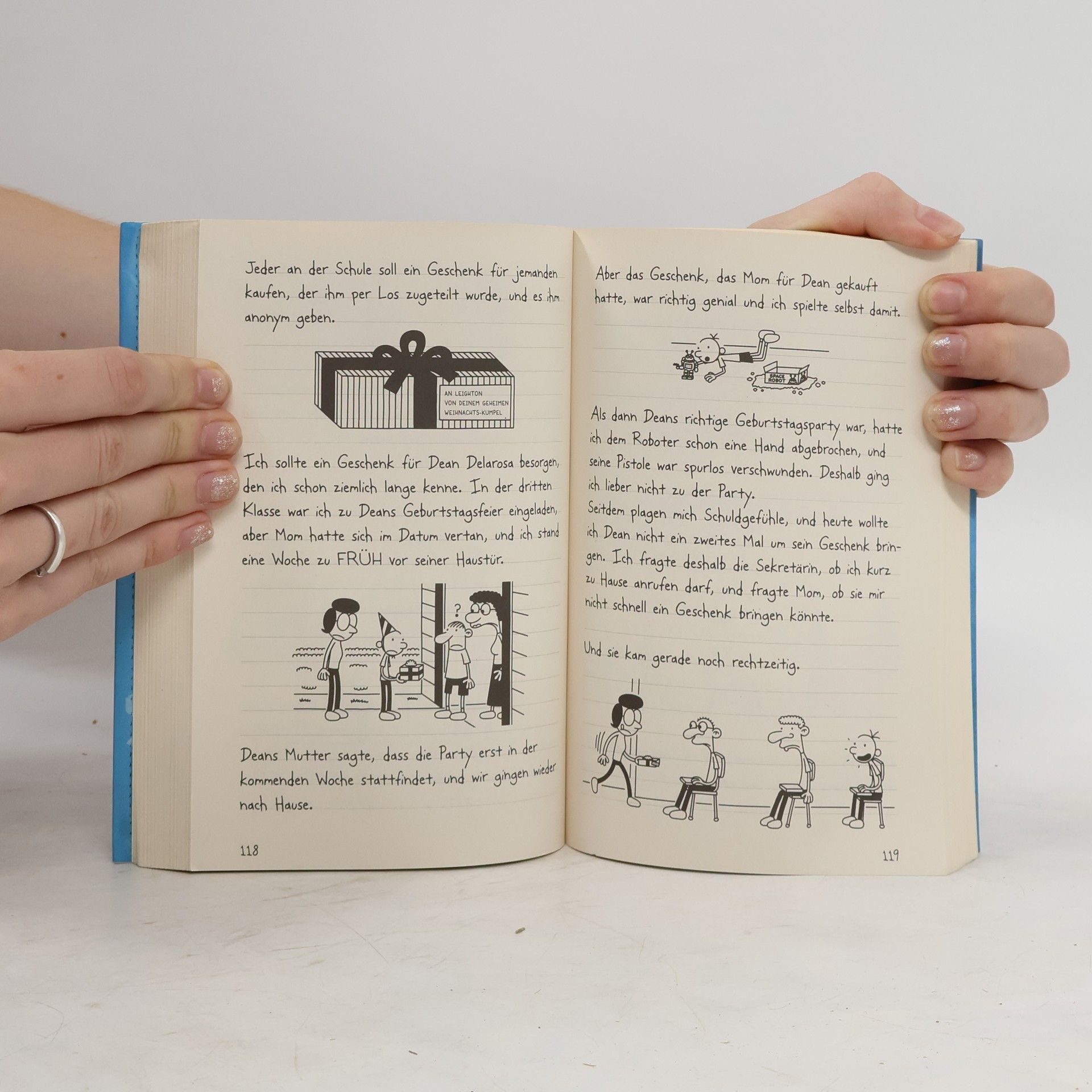 Weihnachten steht vor der Tür - eigentlich doch wunderbare Aussichten. Aber nicht für Greg, dem ist das zu viel Druck. Schließlich muss man sich in der Vorweihnachtszeit immer extra gut benehmen. Besonders seit seine Mutter diese gruselige Puppe rausgeholt hat, die für den Weihnachtsmann spioniert, und die dauernd woanders hockt und Greg beobachtet ... Zu allem Übel werden die Heffleys dann auch noch von einem Schneesturm überrascht und eingeschneit. So bleibt die Familie im Haus gefangen. Der Strom fällt aus, das Essen wird knapp, und alle gehen sich kräftig auf den Wecker ... Stellt sich die Frage: Gibt es eine schlimmere Strafe, als mit der eigenen Familie eingesperrt zu sein? Da heißt es: Nerven behalten. Nur keine Panik!