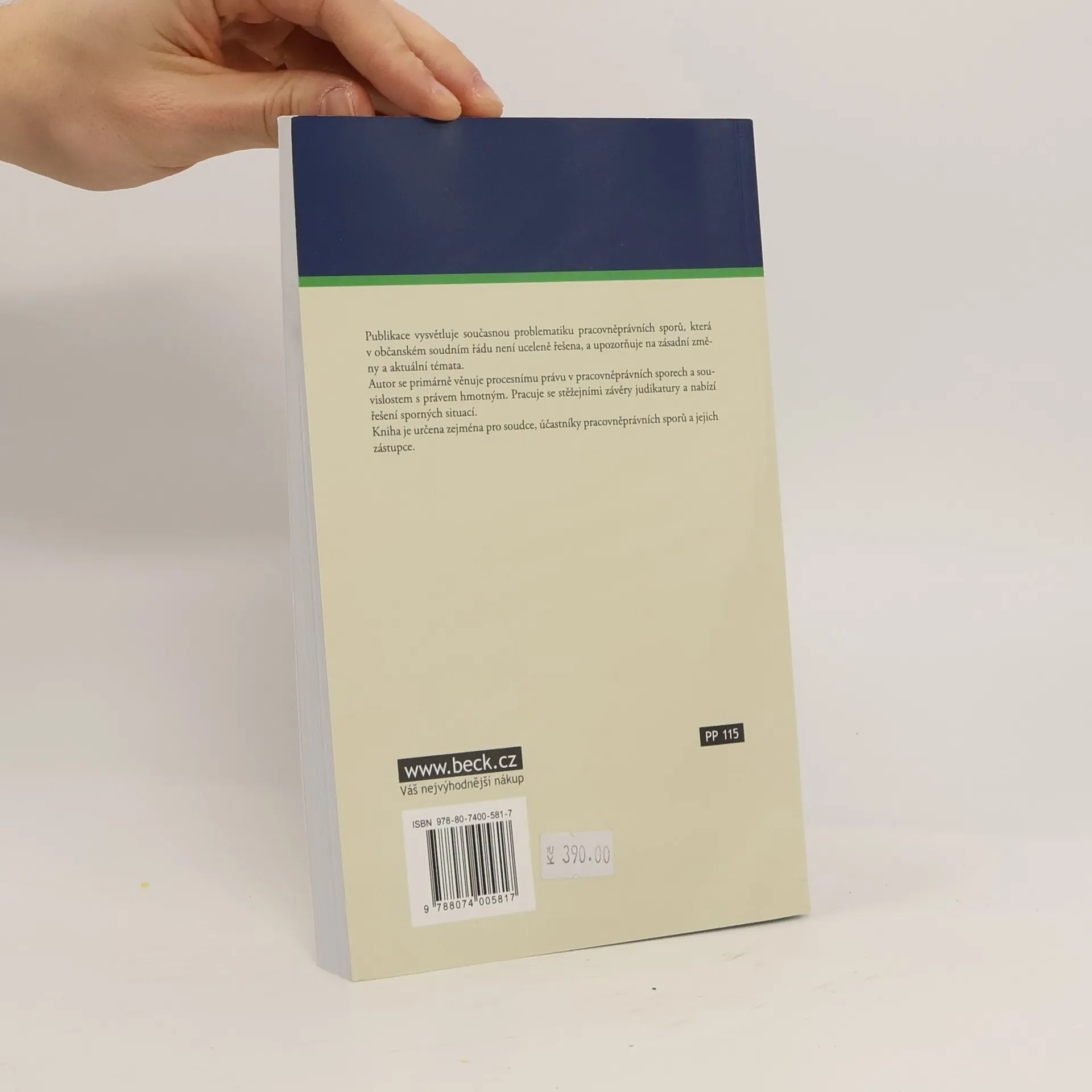 Publikace vysvětluje současnou problematiku pracovněprávních sporů, která v občanském soudním řádu není uceleně řešena, a upozorňuje na zásadní změny a aktuální témata. Autor se primárně věnuje procesnímu právu v pracovněprávních sporech a souvislostem s právem hmotným. Pracuje se stěžejními závěry judikatury a nabízí řešení sporných situací. Kniha je určena zejména pro soudce, účastníky pracovněprávních sporů a jejich zástupce.