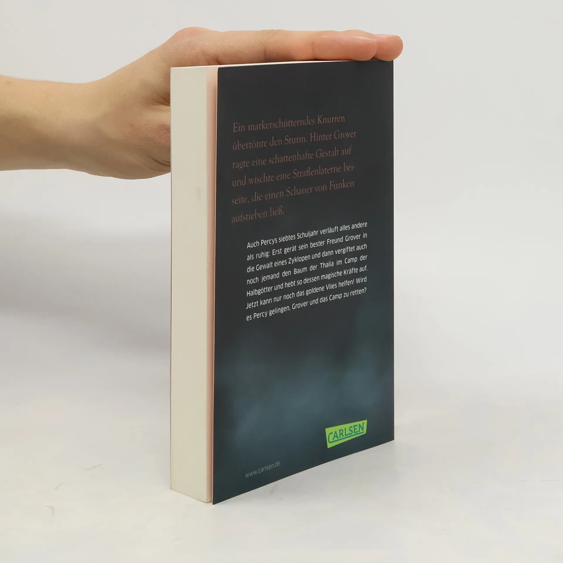 Auch Percys siebtes Schuljahr verläuft nicht wirklich ruhig: Erst gerät sein bester Freund Grover in die Gewalt eines Zyklopen, dann vergiftet jemand den Baum der Thalia im Camp der Halbgötter und hebt so dessen magische Kräfte auf. Nur das goldene Vlies kann jetzt noch helfen. Das aufzutreiben ist allerdings weitaus schwieriger als Percy gedacht hat - ein abenteuerlicher Wettlauf um das Leben Grovers und die Sicherheit des Camps beginnt.