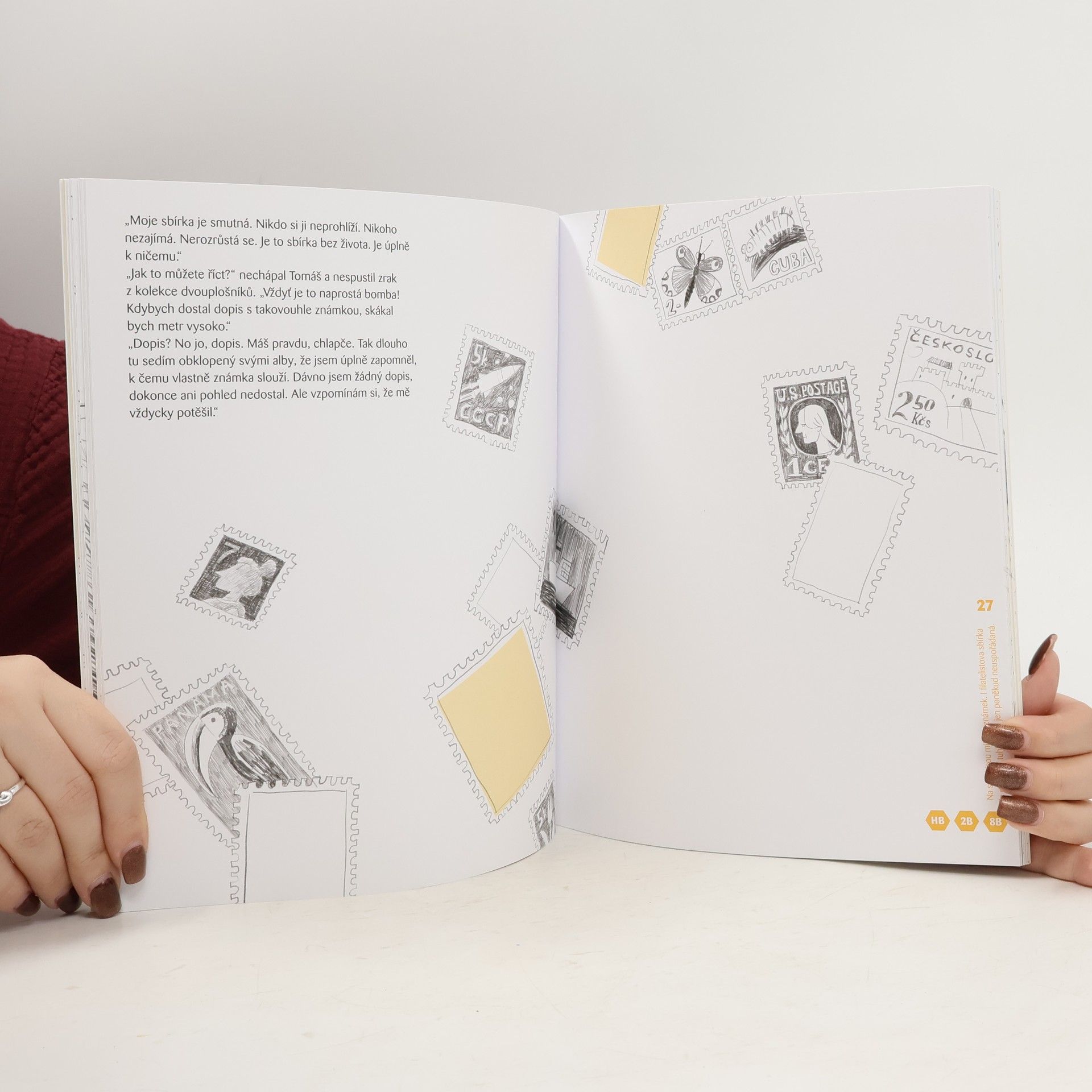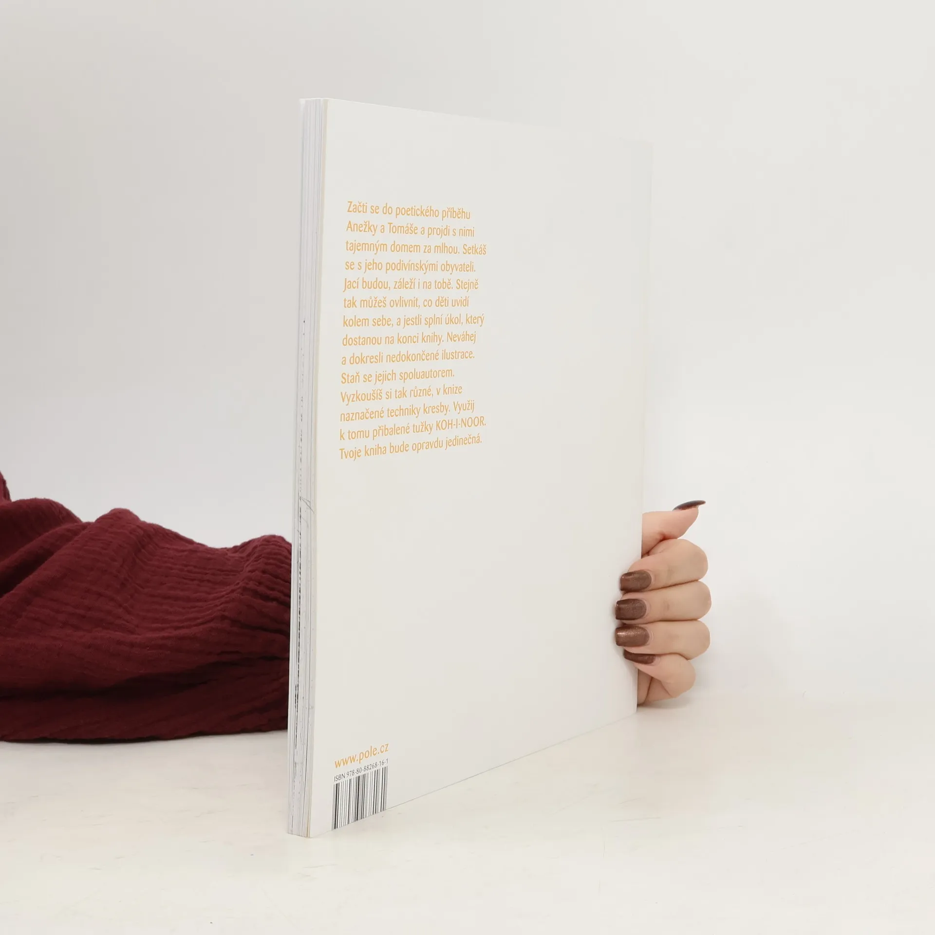 Poetický příběh dvou malých dětí, které se unášeny vlastní fantazií procházejí domem za mlhou a setkávají se s jeho podivínskými obyvateli. Pro děti kolem devíti let.Významnou roli v příběhu sehrává samotný čtenář. Je vtažen do děje, spoluilustruje jednotlivé momenty, hledá další řešení. Rozvíjí vlastní kreativitu a zároveň si vyzkouší různé techniky kresby, např. frotáž či plynulé stínování. Cíleně při tom využívá celou škálu tvrdosti tužek. Dodáváno v dárkovém boxu se sadou tužek KOH-I-NOOR.