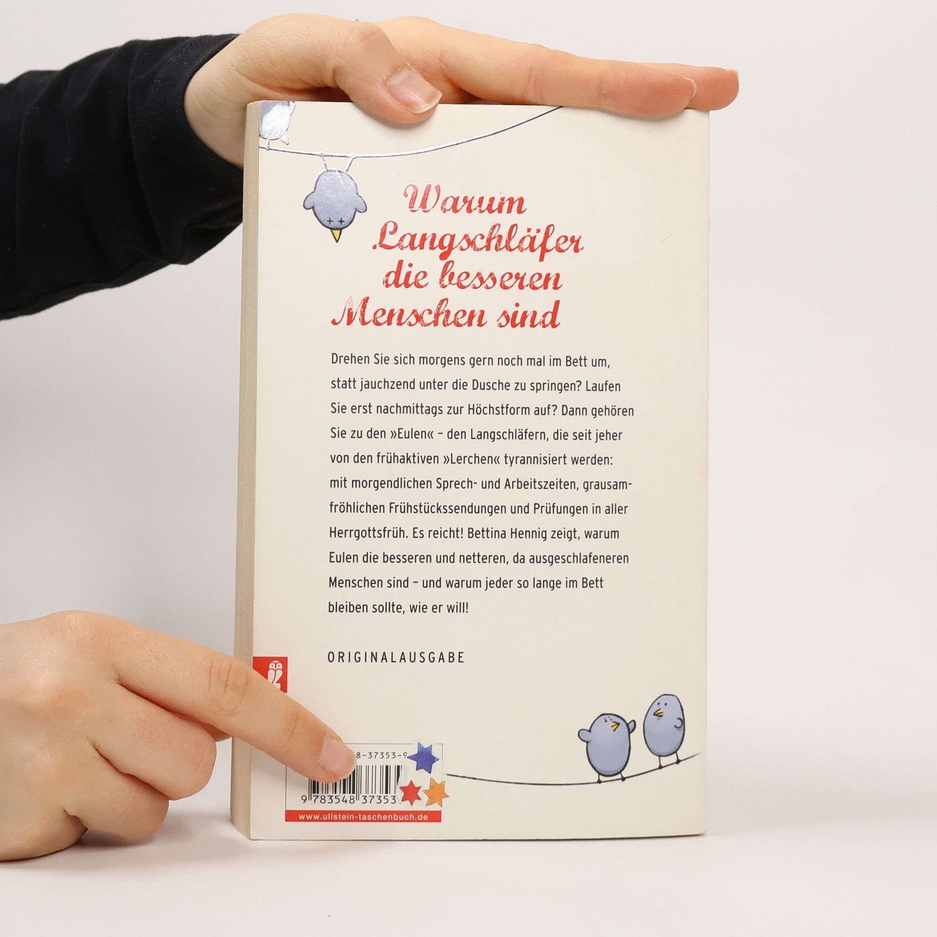 Drehen Sie sich morgens gern noch mal im Bett um, statt jauchzend unter die Dusche zu springen? Laufen Sie erst nachmittags zur Höchstform auf? Dann gehören Sie zu den »Eulen« – den Langschläfern, die seit jeher von den frühaktiven »Lerchen« tyrannisiert werden: mit morgendlichen Sprech- und Arbeitszeiten, grausam-fröhlichen Frühstückssendungen und Prüfungen in aller Herrgottsfrüh. Es reicht! Bettina Hennig zeigt, warum Eulen die besseren und netteren, da ausgeschlafeneren Menschen sind und man so lange im Bett bleiben sollte, wie man will!