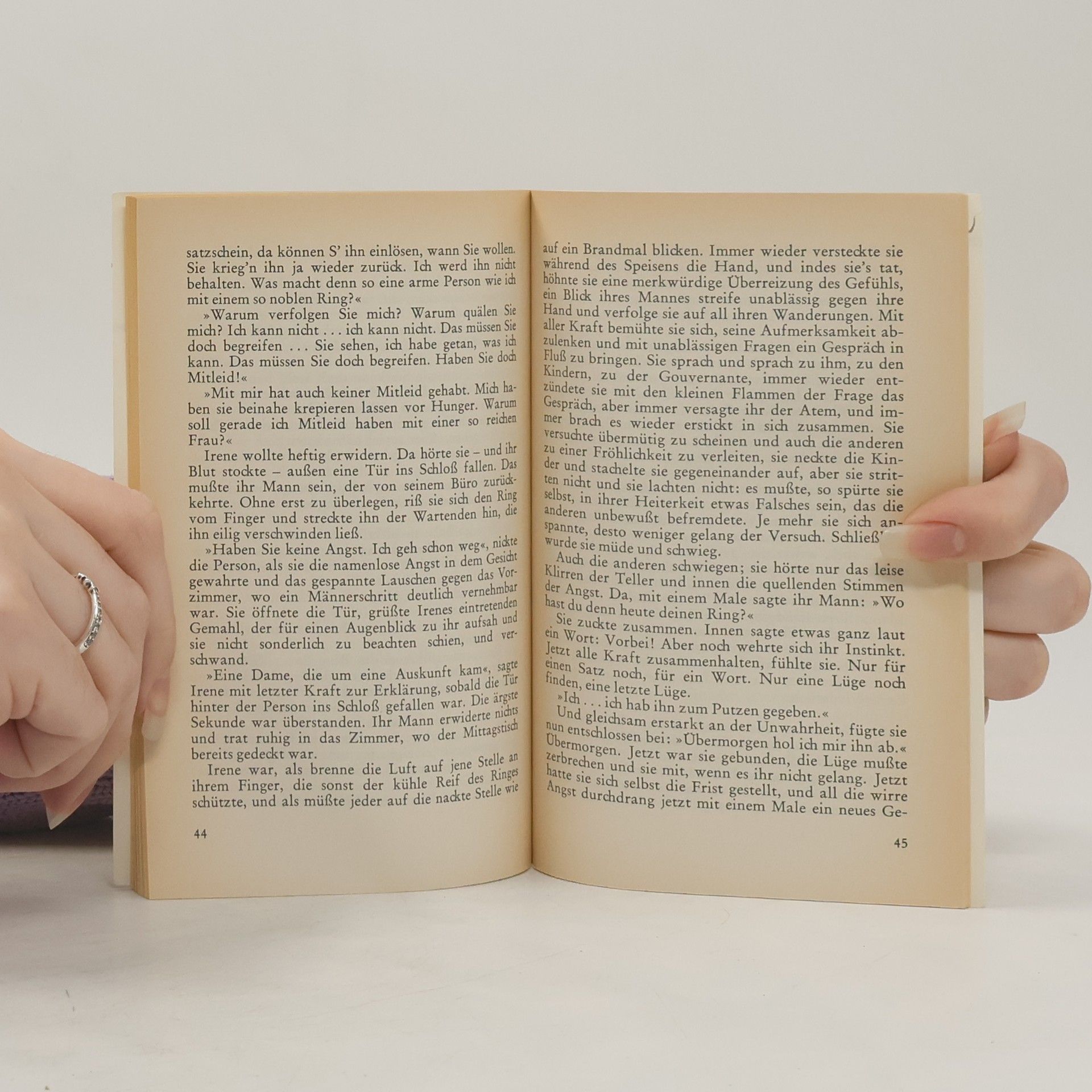 Irene Wagner, verheiratet und Mutter zweier Kinder, lebt vordergründig ein Leben, das den Anforderungen bürgerlicher Moralvorstellung vollauf genügt. Im Widerspruch zu diesem Leben steht ihr Verhältnis mit einem Musiker. Sorgsam um Geheimhaltung bemüht, wird sie bei einem Treffen mit ihrem Liebhaber von einer vermeintlichen Nebenbuhlerin gestellt und erpresst. Als auch ihr Ehemann Verdacht zu schöpfen scheint, entsteht aus dem Konflikt zwischen individueller Leidenschaft und gesellschaftlicher Norm ein Sog, der Irene, getrieben von Angst und Schuld, schließlich zum Äußersten treibt. Die Novelle des österreichischen Schriftstellers Stefan Zweig entstand 1910 in Wien. Sie exemplifiziert am Charakter der Irene die Freudschen Theorien zur Psychoanalyse.