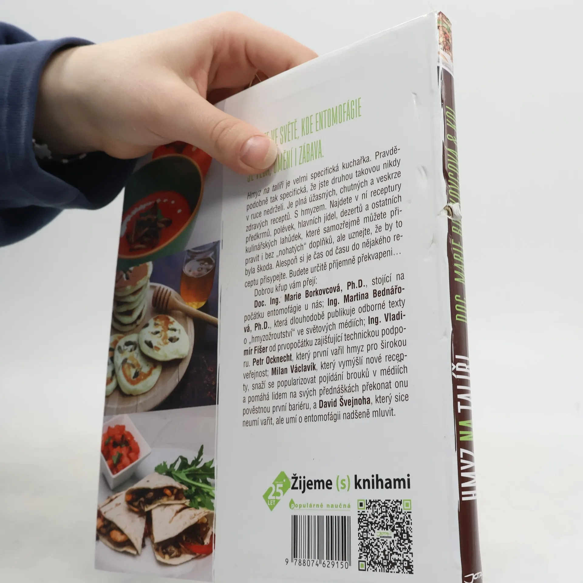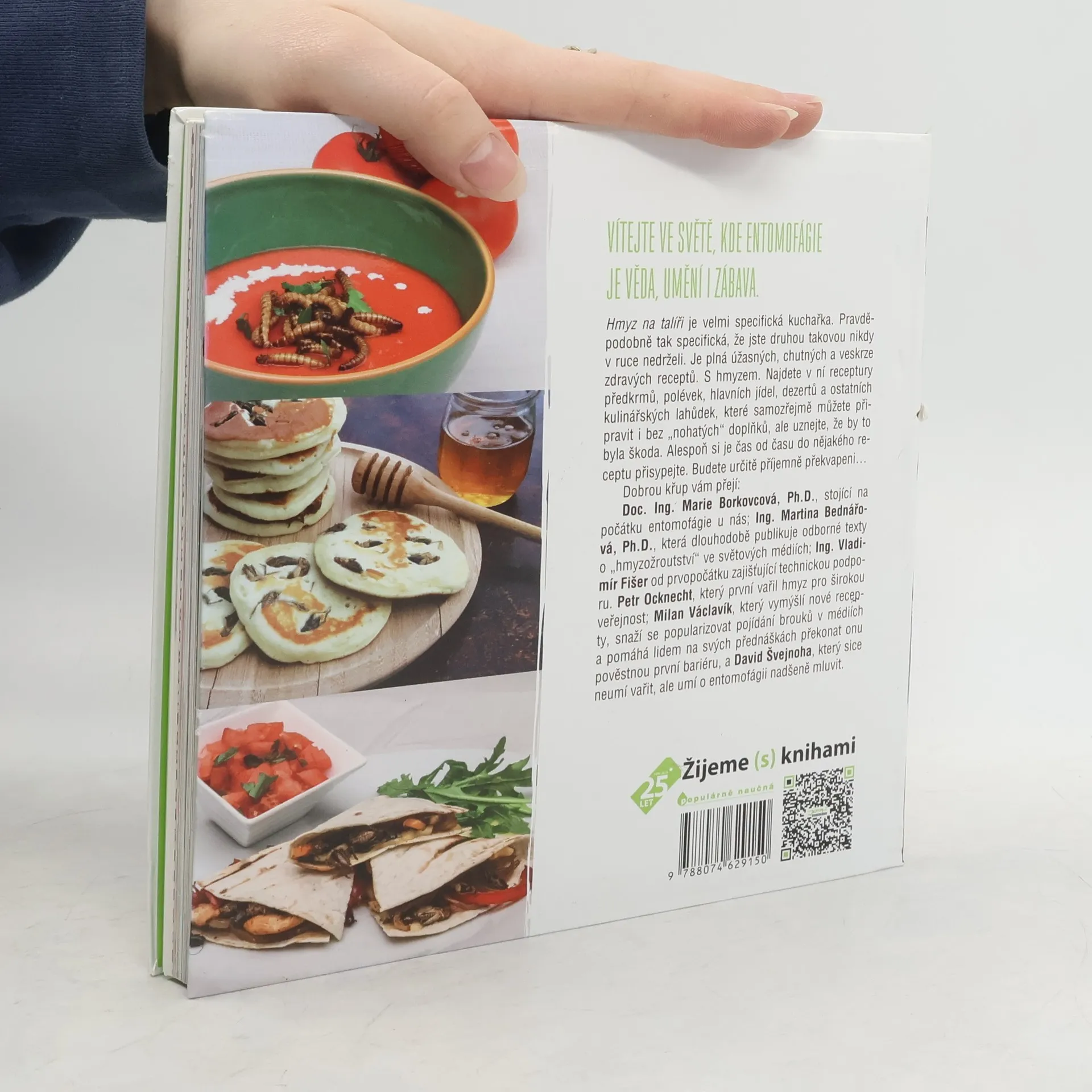 Vítejte ve světě, kde entomofágie je věda, umění i zábava. Hmyz na talíři je velmi specifická kuchařka. Pravděpodobně tak specifická, že jste druhou takovou nikdy v ruce nedrželi. Je plná úžasných, chutných a veskrze zdravých receptů. S hmyzem. Najdete v ní receptury předkrmů, polévek, hlavních jídel, dezertů a ostatních kulinářských lahůdek, které samozřejmě můžete připravit i bez „nohatých“ doplňků, ale uznejte, že by to byla škoda. Alespoň si je čas od času do nějakého receptu přisypejte. Budete určitě příjemně překvapeni… Pojem entomofágie se od přelomu století rozšířil do povědomí mnoha lidí, zájem o recepty a konzumaci hmyzu neustále roste a přání potenciálních konzumentů hmyzu vyústilo v sepsání kuchařky Hmyz na talíři. Najdete v ní odpovědi na otázky, proč jíme hmyz, trochu teorie o tom, jak pracuje lidské tělo, povídání o hmyzu, provedeme vás cestou kolem světa a dozvíte se také, jak hmyz připravovat k vaření. Celý autorský kolektiv přeje pěkné počtení a dobrou chuť!