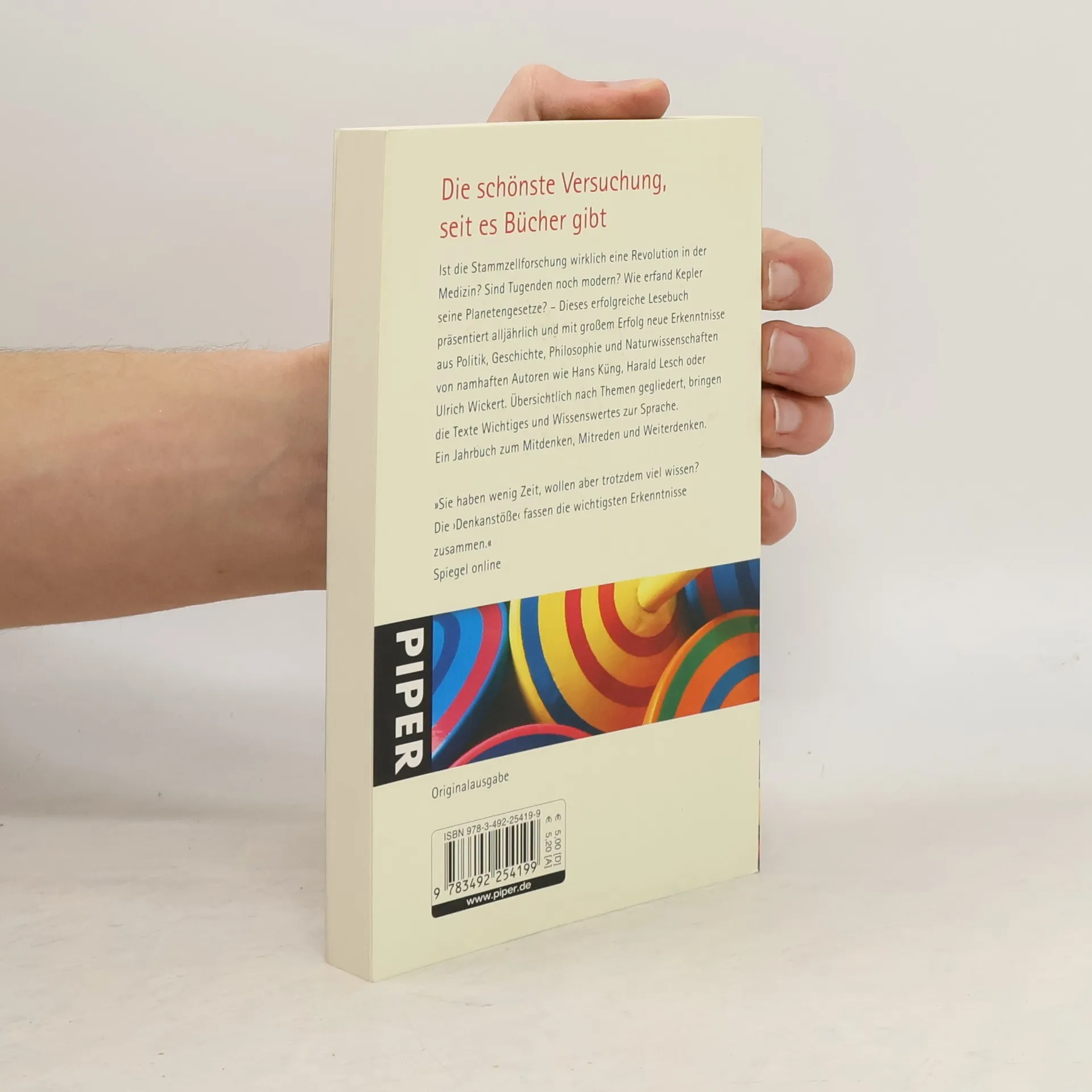 Was muss man über die Weltreligionen wirklich wissen? Wer war der Armenarzt Eduard Bloch, den Hitler einen 'Edeljuden' nannte? Was genau fand im deutschen Schicksalsjahr 1989 statt? Was sind die neuesten Erkenntnisse in der Quantenphysik? – Dieses erfolgreiche Lesebuch präsentiert alljährlich und mit großem Erfolg neue Erkenntnisse aus Politik, Wirtschaft, Philosophie und Naturwissenschaften von namhaften Autoren. Übersichtlich nach Themen gegliedert, bringen die Texte Wichtiges und Wissenswertes zur Sprache. Ein Jahrbuch zum Mitdenken, Mitreden und Weiterdenken.