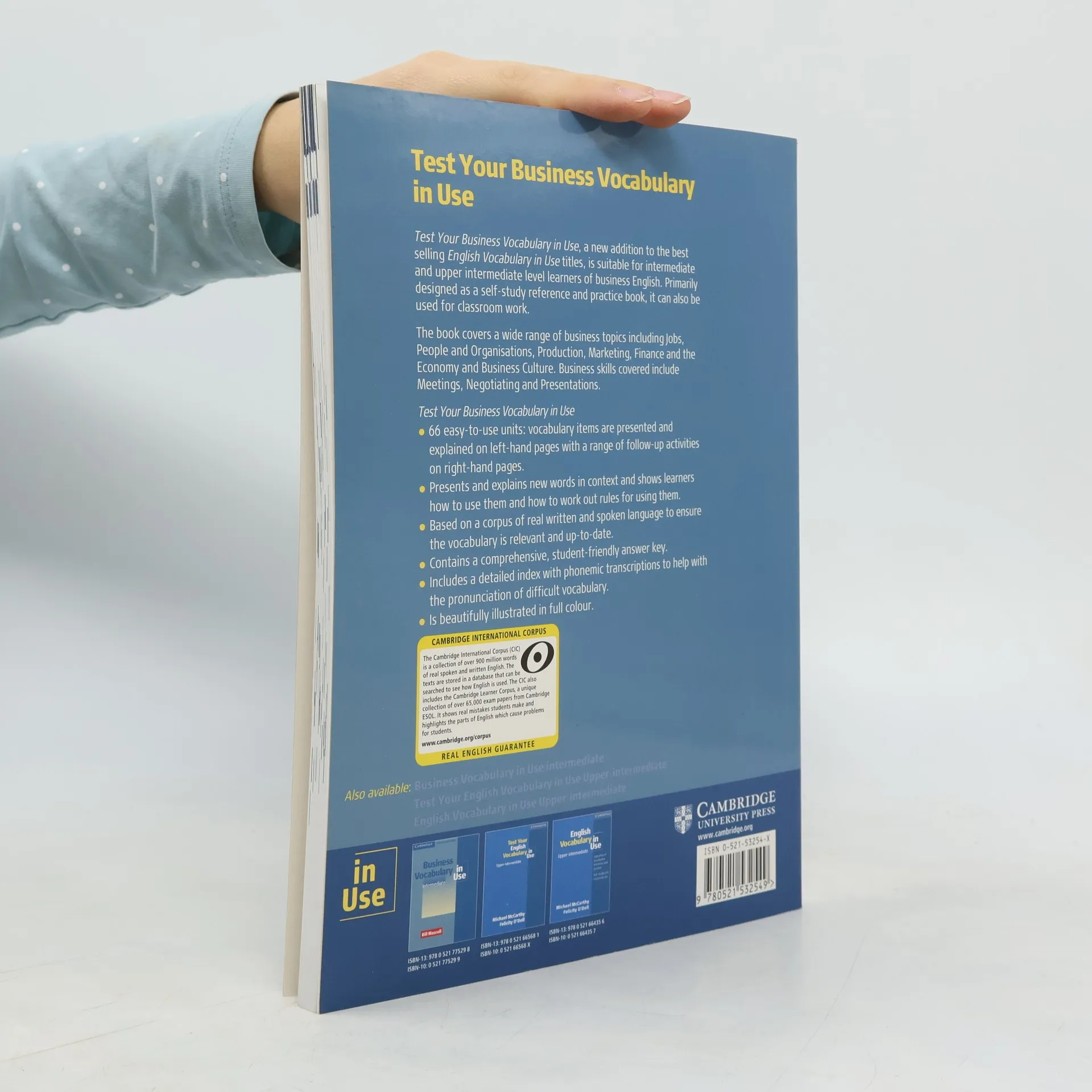 Test Your Business Vocabulary in Use is a set of 66 tests based on the key corpus informed vocabulary highlighted in Business Vocabulary in Use. There is a clear one-page test for each unit of the parent book and a user-friendly answer key which enables learners to check their answers accurately. The scoring system provides the self-study learner with immediate feedback on their progress. The book contains both British and American English and is ideal for self-study or to complement classroom study.