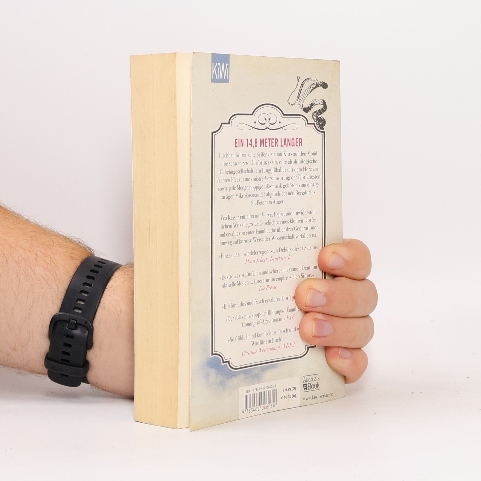 »Ein großer Literaturspaß, ein sehr gelungenes Debüt« Denis Scheck Ein 14,8 Meter langer Fischbandwurm, eine Seifenkiste mit Kurs auf den Mond, ein ungeahnt attraktiver Mönch im Jaguar, ein fallender Engel, eine schwangere Dorfprinzessin, eine altphilologische Geheimgesellschaft, eine nordic-walkende Mütterrunde, ein Jungfußballer mit dem Herz am rechten Fleck, eine sinistre Verschwörung der Dorfältesten sowie jede Menge poppige Blasmusik gehören zum unvergesslichen Mikrokosmos dieses Romans, der durch seine Hingabe an leuchtende Details und skurrile Begebenheiten, durch seinen erzählerischen Furor und seine Vielstimmigkeit besticht. Vea Kaiser entfaltet mit Verve, Esprit und unwiderstehlichem Witz die große Geschichte eines kleinen Dorfes und erzählt von einer Familie, die über drei Generationen hinweg auf kuriose Weise der Wissenschaft verfallen ist. Ein wagemutiges, herausragendes Debüt, das Kritik und Leser gleichermaßen verzaubert hat.