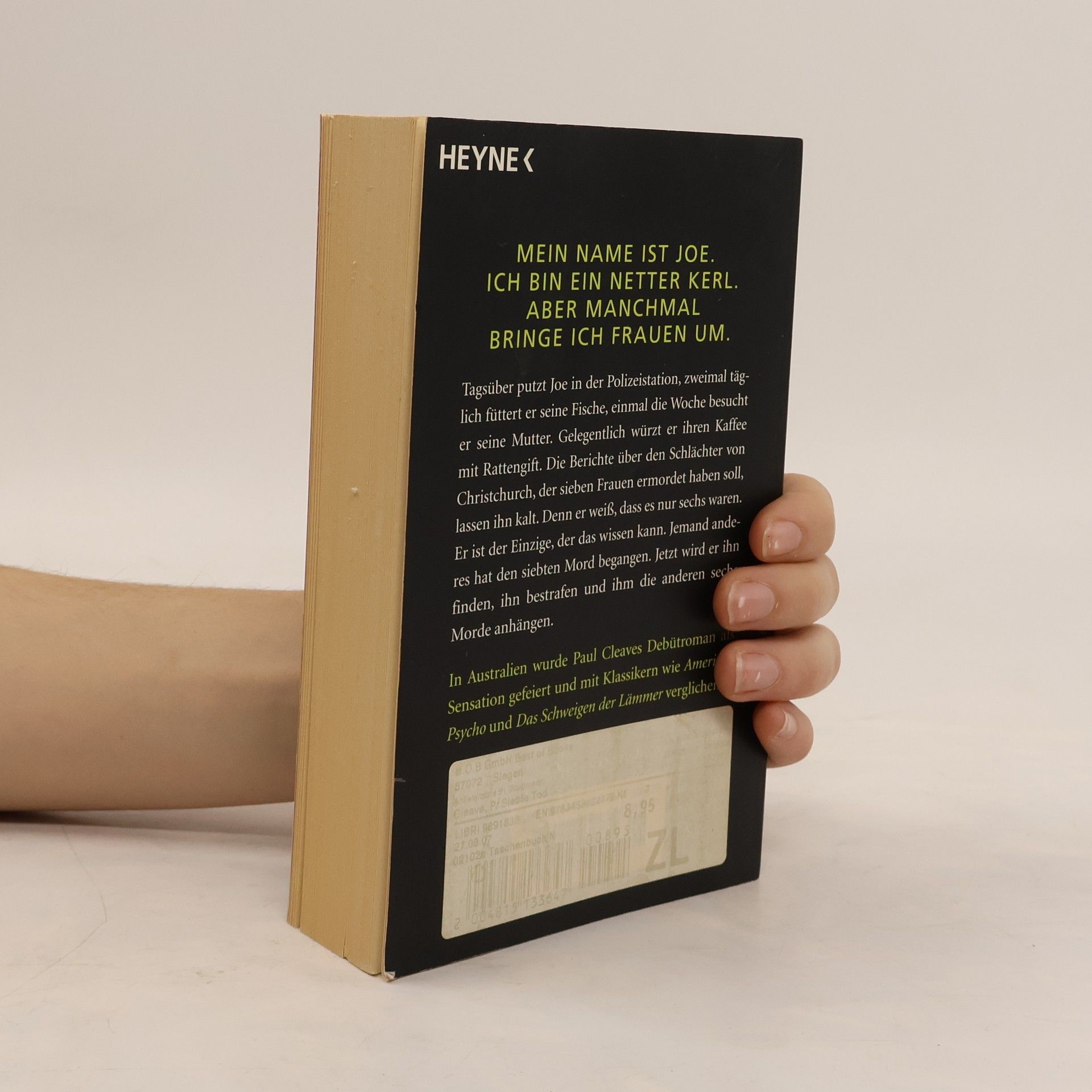 Mein Name ist Joe. Ich bin ein netter Kerl. Aber manchmal bringe ich Frauen um. Joe hat sein Leben scheinbar fest im Griff - tagsüber jobbt er als Putzmann bei der Polizei, abends geht er anderen Tätigkeiten nach. Er denkt daran, seine Fische zweimal täglich zu füttern und seine Mutter mindestens einmal pro Woche zu besuchen, obwohl er ihren Kaffee ab und zu mit Rattengift verfeinert. Er stört sich kaum an den Nachrichten über den Schlächter von Christchurch, der - so wird behauptet - sieben Frauen umgebracht hat. Joe weiß, dass der Schlächter nur sechs getötet hat. Er weiß es ganz einfach. Und Joe wird diesen Nachahmer finden; er wird ihn für die eine Tat bestrafen und ihm die anderen sechs Morde anhängen. Ein perfekter Plan, denn er weiß bereits, dass er die Polizei überlisten kann. Das Einzige, was noch getan werden muss, ist, sich um all die Frauen zu kümmern, die nicht aufhören, ihm im Weg zu stehen.