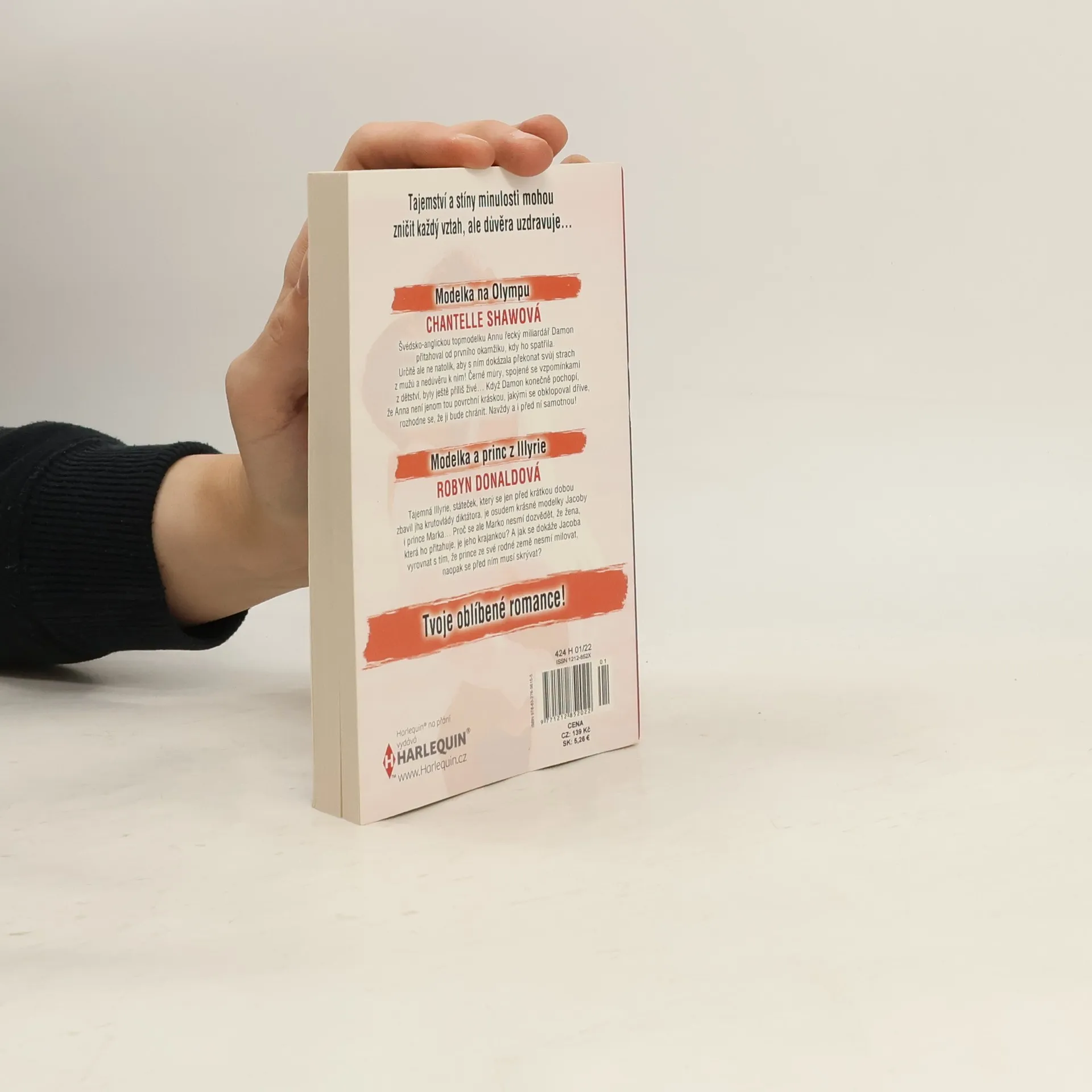 Modelka na Olympu Švédsko-anglickou topmodelku Annu řecký miliardář Damon přitahoval od prvního okamžiku, kdy ho spatřila. Určitě ale ne natolik, aby s ním dokázala překonat svůj strach z mužů a nedůvěru k nim! Černé můry, spojené se vzpomínkami z dětství, byly ještě příliš živé… Když Damon konečně pochopí, že Anna neníjenom tou povrchní kráskou, jakými se obklopoval dříve, rozhodne se, že ji bude chránit. Navždy a i před ní samotnou! Modelka a princ z Illyrie Tajemná Illyrie, státeček, který se jen před krátkou dobou zbavil jha krutovlády diktátora, je osudem krásné modelky Jacoby i prince Marka… Proč se ale Marko nesmí dozvědět, že žena, která ho přitahuje, je jeho krajankou? A jak se dokáže Jacoba vyrovnat s tím, že prince ze své rodné země nesmí milovat, naopak se před ním musí skrývat?