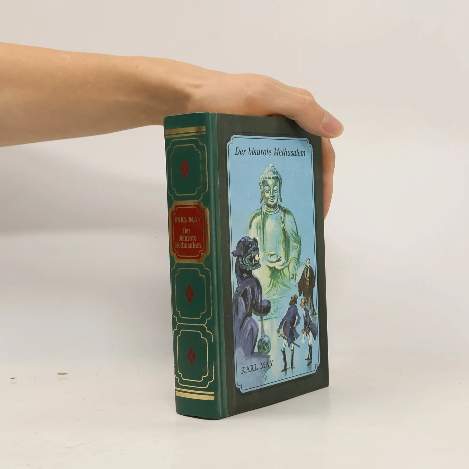 Der blaurote Methusalem ist eine der urwüchsigen Gestalten Karl Mays, der den Leser in das Reich der Mitte führt. Zwischen Dieben, die Götterbilder stehlen, Beamten, die gegen klingende Münze einsperren und wieder laufenlassen, und gefährlichen Dschunkenpiraten spielt sich das Geschehen ab