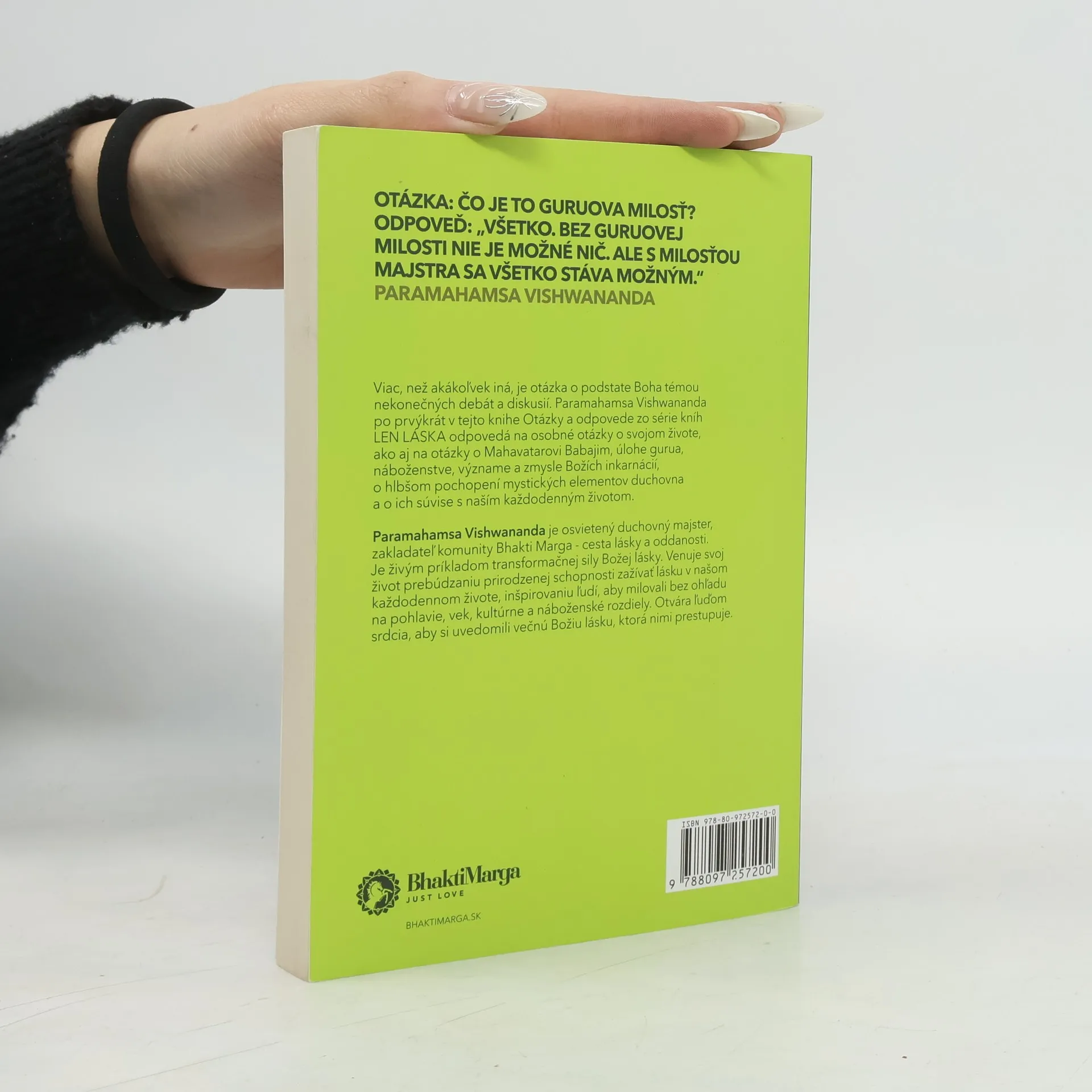OTÁZKA: Čo je to Guruova milosť? ODPOVEĎ: ,,Všetko. Bez Guruovej milosti nie je možné nič. Ale s milosťou Majstra sa všetko stáva možným." PARAMAHAMSA VISHWANANDA Viac, než akákol'vek iná, je otázka o podstate Boha témou nekonečných debát a diskusií. Paramahamsa Vishwananda po prvýkrát v tejto knihe Otázky a odpovede zo série kníh LENLÁSKA odpovedá na osobné otázky o svojom živote, ako aj na otázky o Mahavatarovi Babajim, úlohe gurua, náboženstve, význame a zmysle Božích inkarnácií, o hlbšom pochopení mystických elementov duchovna a o ich súvise s naším každodenným životom.