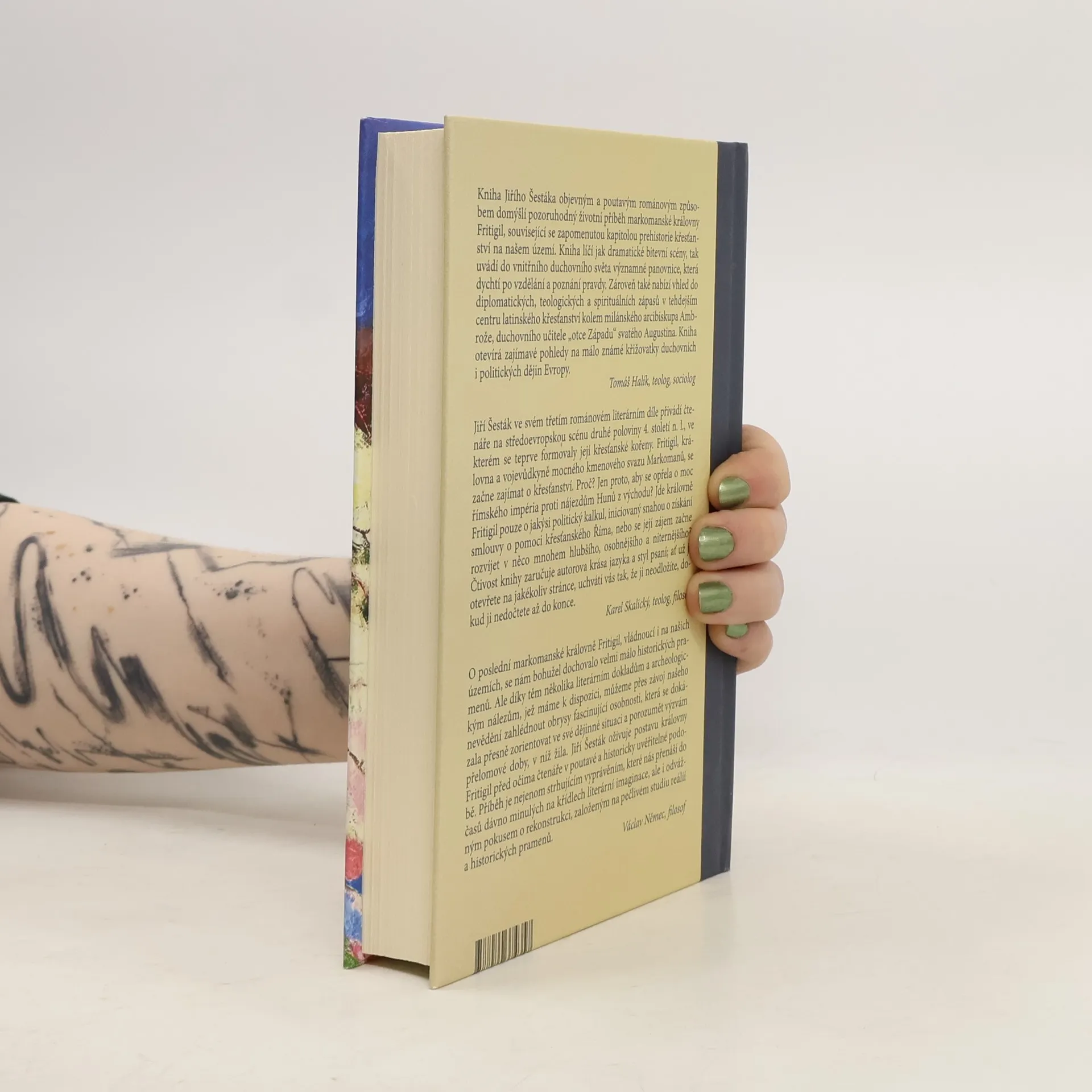 Kniha Jiřího Šestáka objevným a poutavým románovým způsobem domýšlí pozoruhodný životní příběh markomanské královny Fritigil, související se zapomenutou kapitolou prehistorie křesťanství na našem území. O této poslední markomanské královně, vládnoucí i na našich územích, se nám bohužel dochovalo velmi málo historických pramenů. Ale díky těm několika literárním dokladům a archeologickým nálezům, jež máme k dispozici, můžeme přes závoj našeho nevědění zahlédnout obrysy fascinující osobnosti, která se dokázala přesně zorientovat ve své dějinné situaci a porozumět výzvám přelomové doby, v níž žila. Jiří Šesták oživuje postavu královny Fritigil před očima čtenáře v poutavé a historicky uvěřitelné podobě. Příběh je nejenom strhujícím vyprávěním, které nás přenáší do časů dávno minulých na křídlech literární imaginace, ale i odvážným pokusem o rekonstrukci, založeným na pečlivém studiu reálií a historických pramenů.