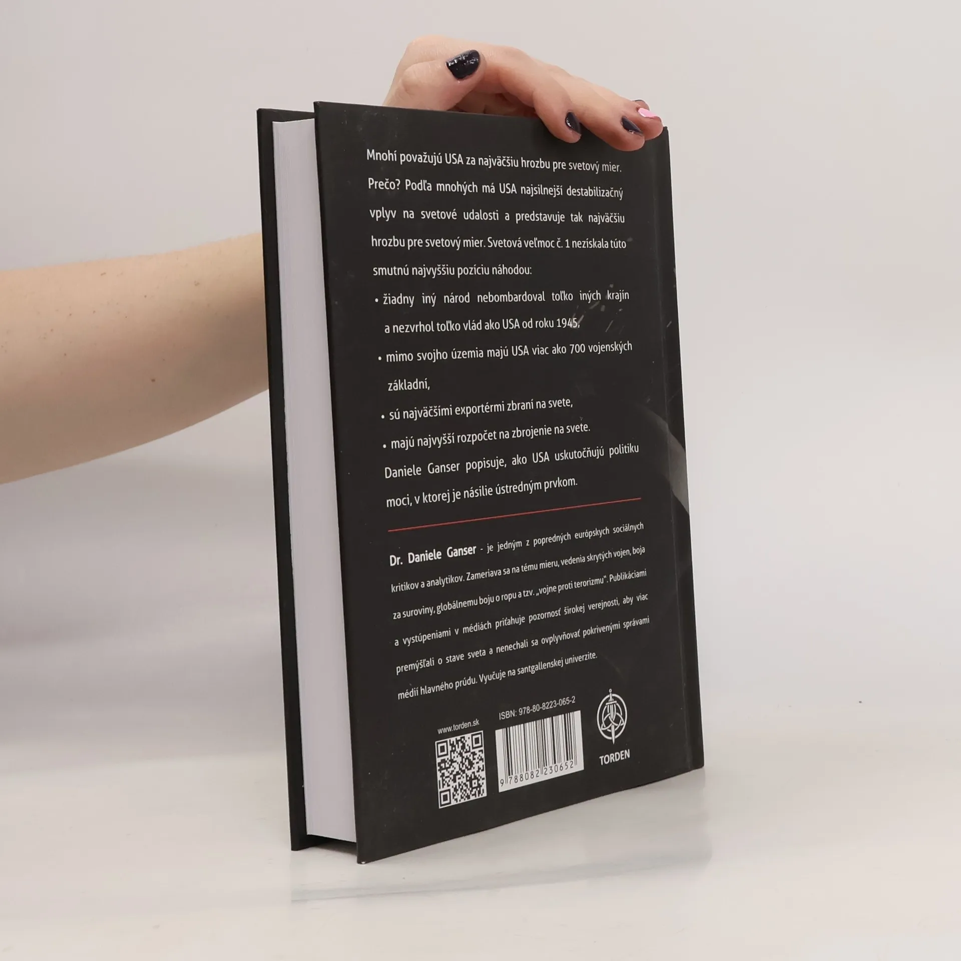 Mnohí považujú USA za najväčšiu hrozbu pre svetový mier. Prečo? Podľa mnohých má USA najsilnejší destabilizačný vplyv na svetové udalosti a predstavuje tak najväčšiu hrozbu pre svetový mier. Svetová veľmoc č. 1 nezískala túto smutnú najvyššiu pozíciu náhodou. Žiadny iný národ nebombardoval toľko iných krajín a nezvrhol toľko vlád ako USA od roku 1945. Mimo svojho územia majú USA viac ako 700 vojenských základní, sú najväčšími exportérmi zbraní a majú najvyšší rozpočet na zbrojenie na svete. Daniele Ganser popisuje, ako USA uskutočňujú politiku moci, v ktorej je násilie ústredným prvkom.