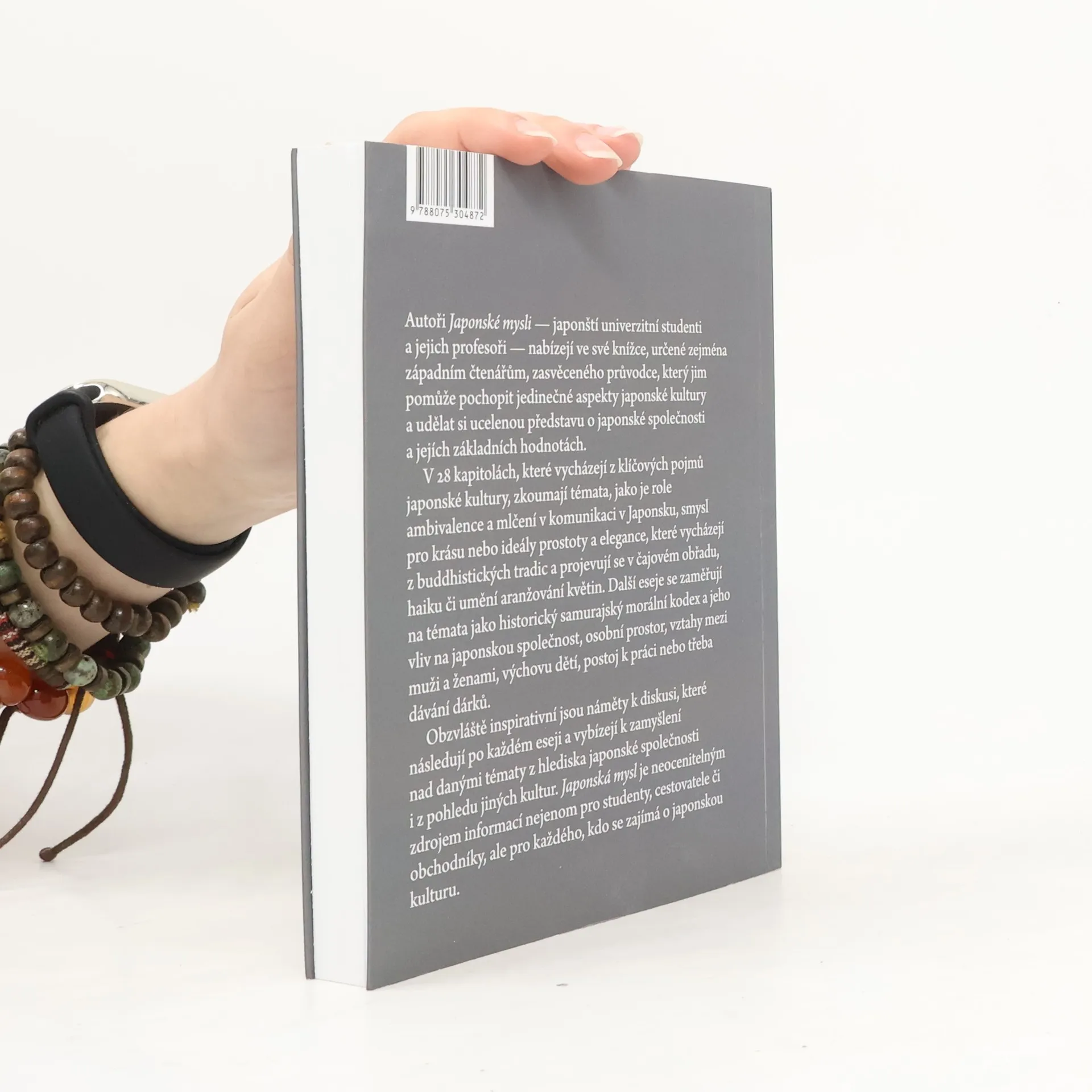 V knize Japonská mysl nabízí autoři západním čtenářům zasvěceného průvodce, který jim pomůže pochopit jedinečné aspekty japonské kultury. Čtenáři této knihy získají ucelenou představu o japonské společnosti a jejích základních hodnotách. Mezi zkoumaná témata patří: aimai (nejednoznačnost), amae (závislost na laskavosti druhých) a amakudari (sestup z nebe), činmoku (mlčení v komunikaci), gambari (vytrvalost) a giri (společenská povinnost). haragei (doslova "umění břicha"; implicitní, nevyslovená komunikace), kenkjó (zdání skromnosti) wabi-sabi (jednoduchost a elegance) a zótó (dávání darů). a také diskuse o výchově dětí, osobním prostoru a rolích žen v japonské společnosti. Díky námětům k diskusi a otázkám za každou kapitolou je tato kniha snadno použitelným úvodem do charakteristických rysů japonské společnosti a neocenitelným zdrojem informací pro každého - obchodníky, cestovatele nebo studenty - a nakonec pro každého, kdo se zajímá o japonskou kulturu.