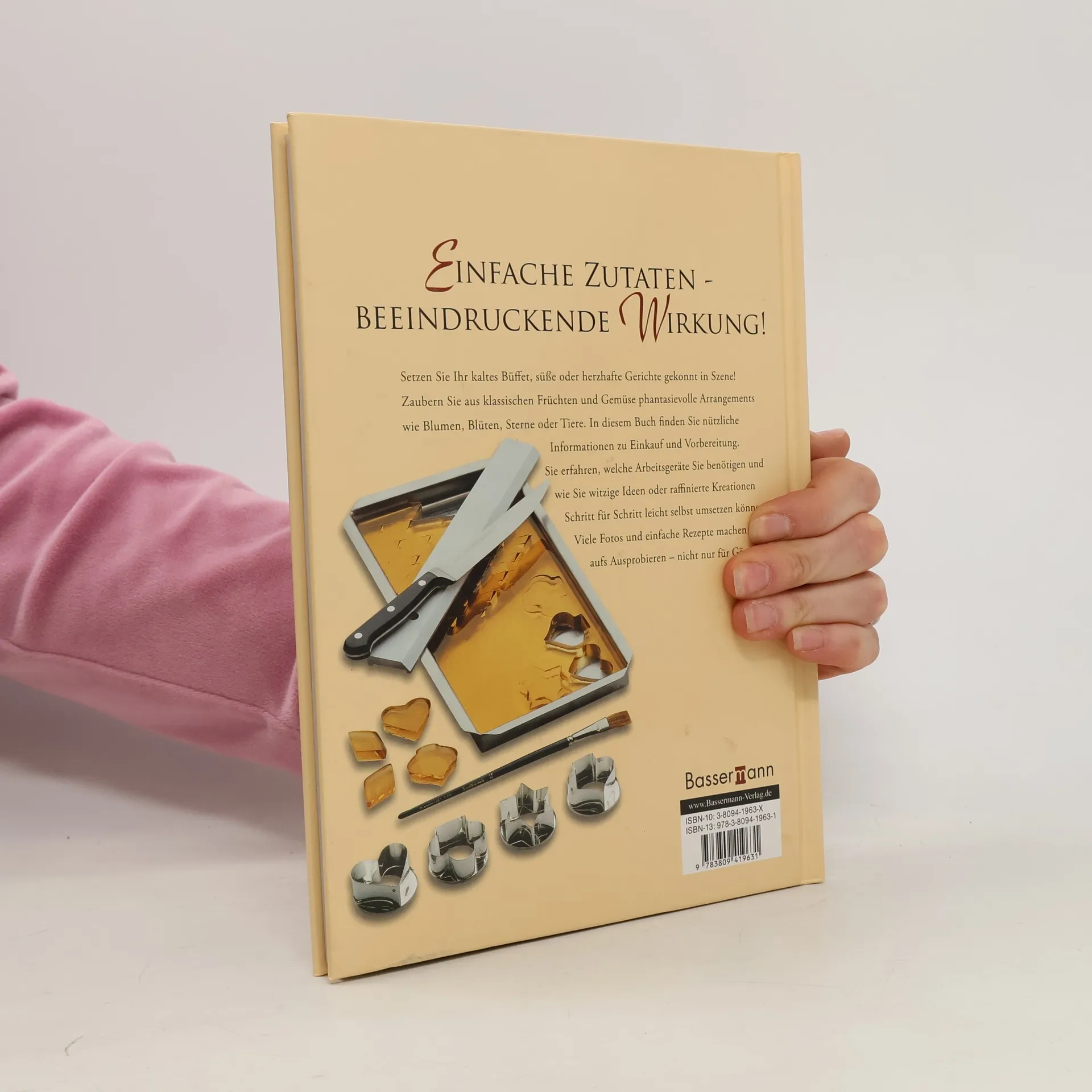 Einfache Zutaten - beeindruckende Wirkung und endlich wieder da! Dieses Buch zeigt, wie aus einfachen Zutaten phantasievolle Arrangements wie Blumen, Blüten, Sterne oder Tiere gezaubert werden. Sie erfahren, welche Arbeitsgeräte benötigt werden und wie witzige Ideen und raffinierte Kreationen Schritt für Schritt leicht umgesetzt werden können. Mit 200 Vorschlägen für raffinierte Garnituren.