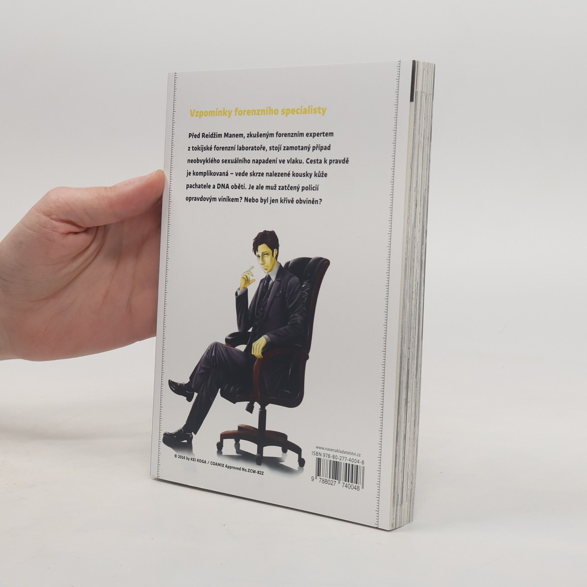 Strhující detektivní manga z pera bývalého forenzního experta. Před Reidžim Manem, zkušeným forenzním specialistou z tokijské forenzní laboratoře, stojí zamotaný případ neobvyklého sexuálního napadení ve vlaku. Cesta k pravdě je komplikovaná – vede skrze kousky kůže pachatele a DNA oběti nalezené na místě činu. Je ale muž zatčený policií opravdovým pachatelem? Nebo byl jen křivě obviněn?