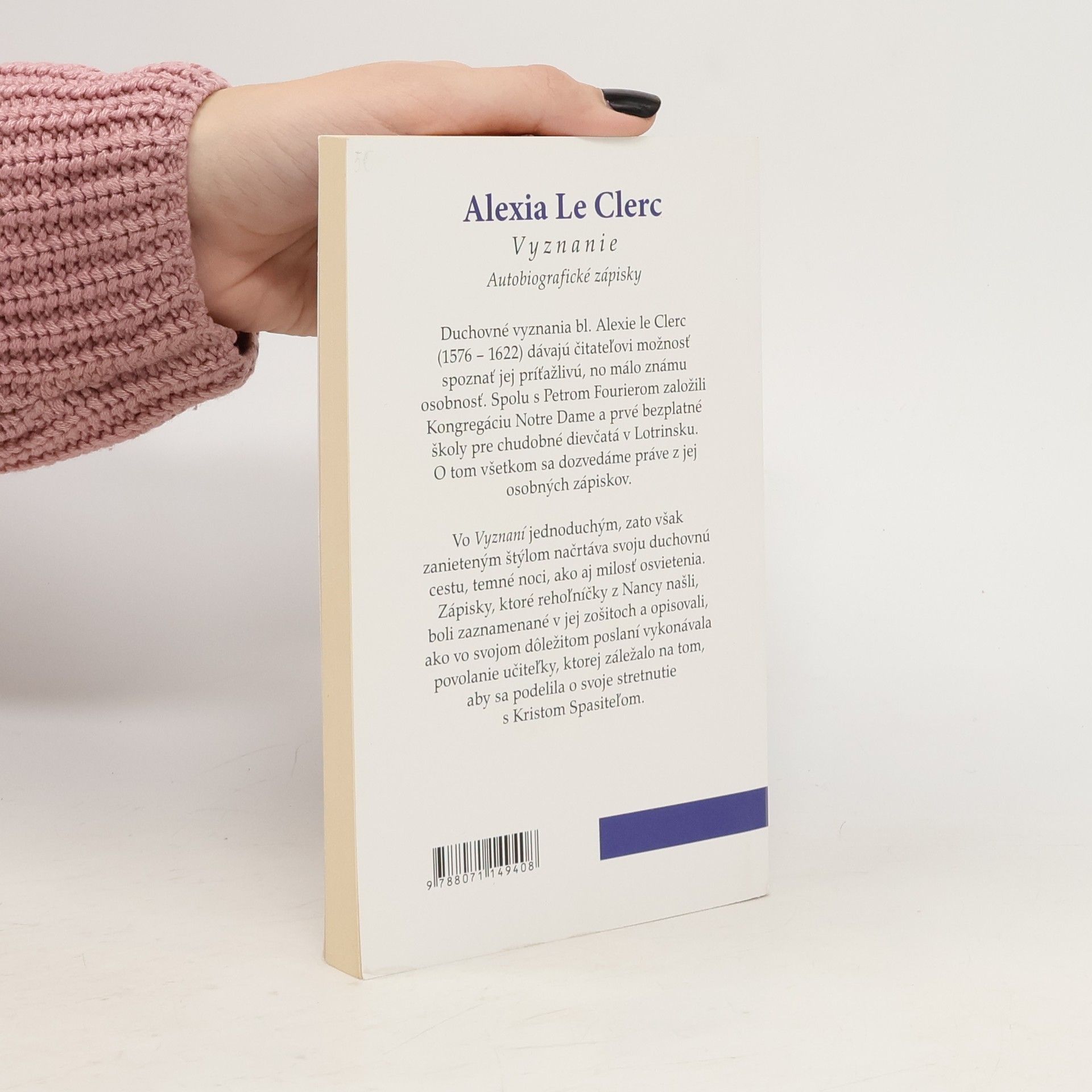Alexia Le Clerc bola jednou zo zakladateliek Kongregácie školských sestier de Notre Dame. Alexia Le Clerc sa narodila 2. februára 1576 v Remiremonte v Lotrinsku. Mala skvelých rodičov, ktorí ju viedli k zbožnosti. Keď mala 16 alebo 17 rokov ochorela. Do rúk sa jej dostala knižka o Božom súde. Povrchné spovede, malá horlivosť, to všetko preniklo jej dušu. Alexia sa rozhodla zmeniť svoj život. Ale to nebolo ľahké pre devu, ktorá milovala svet, hudbu, tanec a mala záľubu v márnostiach. Hlboká premena nastala v jej duši až potom, čo videla na svätej omši veselý sprievod tancujúcich mladých ľudí, ktorých diabol vábil zvukom svojho bubna. Alexia sa rozhodla, že nikdy nechce patriť do takejto spoločnosti. Odložila drahé šaty a obliekla si jednoduchý kroj tamojších dievčat. Túžila po Bohu, ale nevedela, ktorým smerom sa má uberať. Na jej hľadanie a modlitby odpovedal Boh snom. Alexia videla svätú Kláru a svätú Alžbetu a pýtala sa, ktorá z nich ju prijme za svoju dcéru. Ale ani jedna ani druhá ju nechceli prijať. Ukázali na čosi medzi dvoma stĺpmi a povedali, že je to jej povolaním. Bola to kolíska pre malé dieťa. V strede kolísky bolo zasadené ovsené steblo s klasom, vedľa kolísky veľké kladivo, ktoré samočinne udieralo do stebla podľa toho, ako sa kolíska nakláňala. Napadlo jej, že jej povolaním bude rehoľný rád, vystavený prenasledovaniam. Ale nebude zrušený. Tak chápala slabé steblo, ktoré nezlomili ani opätovné údery kladiva. Alexia sa obrátila na svojho spovedníka Petra Fouriera s požiadavkou založiť nový rád, v ktorom sa bude "konať toľko dobra, koľko je len možné." Na polnočnej svätej omši v roku 1597 sa spolu so svojimi spoločníčkami zasvätila Panne Márii. Alexia zomrela 9. januára 1622 v Nancy. Svätý Otec Pius XII. ju prehlásil 4. mája 1947 za blahoslavenú.