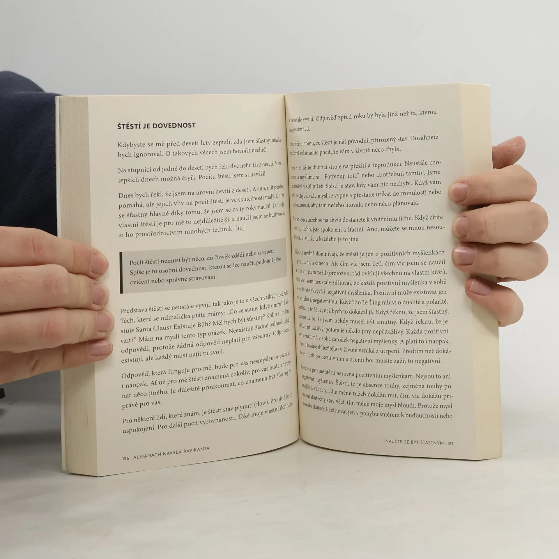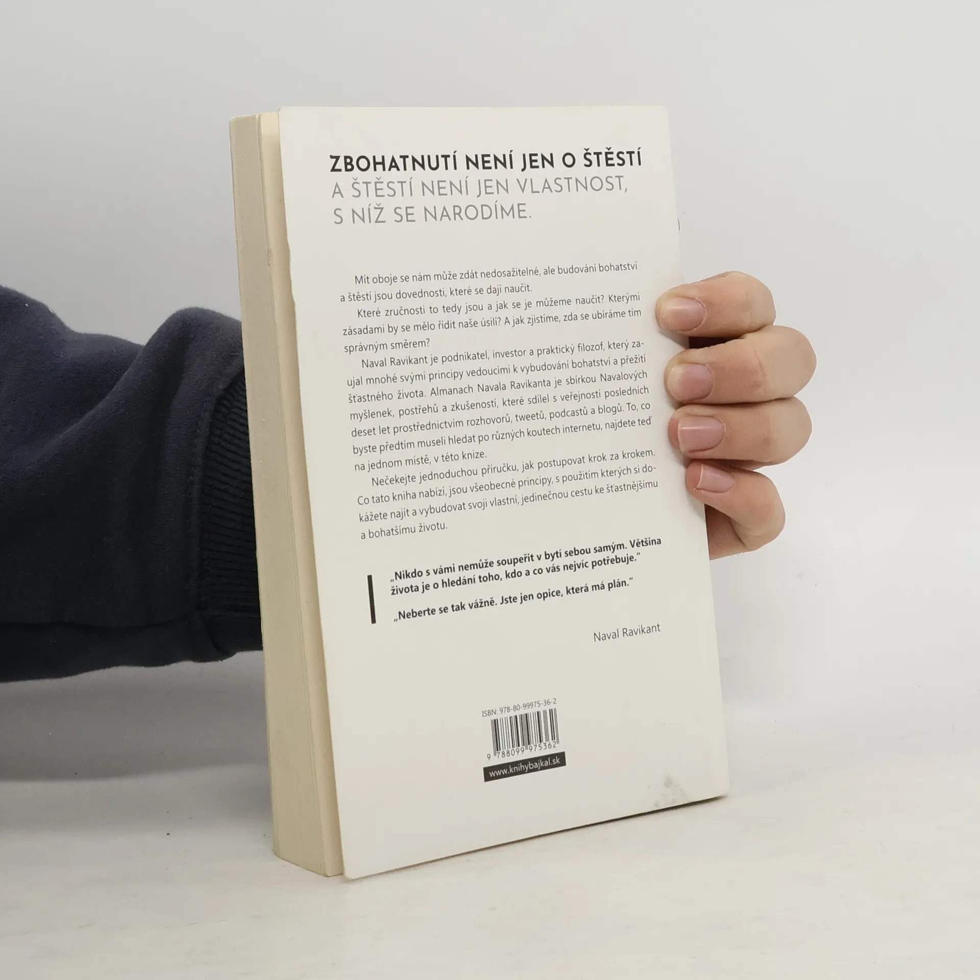 Zbohatnutí není jen o štěstí a štěstí není jen vlastnost, s níž se narodíme. Mít oboje se nám může zdát nedosažitelné, ale budování bohatství a štěstí jsou dovednosti, které se dají naučit. Naval Ravikant je podnikatel, investor a praktický filozof, který zaujal mnohé svými principy vedoucími k vybudování bohatství a přežití šťastného života. Almanach Navala Ravikanta je sbírkou Navalových myšlenek, postřehů a zkušeností, které sdílel s veřejností posledních deset let prostřednictvím rozhovorů, tweetů, podcastů a blogů. To, co byste předtím museli hledat po různých koutech internetu, najdete teď na jednom místě, v této knize. Nečekejte jednoduchou příručku, jak postupovat krok za krokem. Co tato kniha nabízí, jsou všeobecné principy, s použitím kterých si dokážete najít a vybudovat svoji vlastní, jedinečnou cestu ke šťastnějšímu a bohatšímu životu.