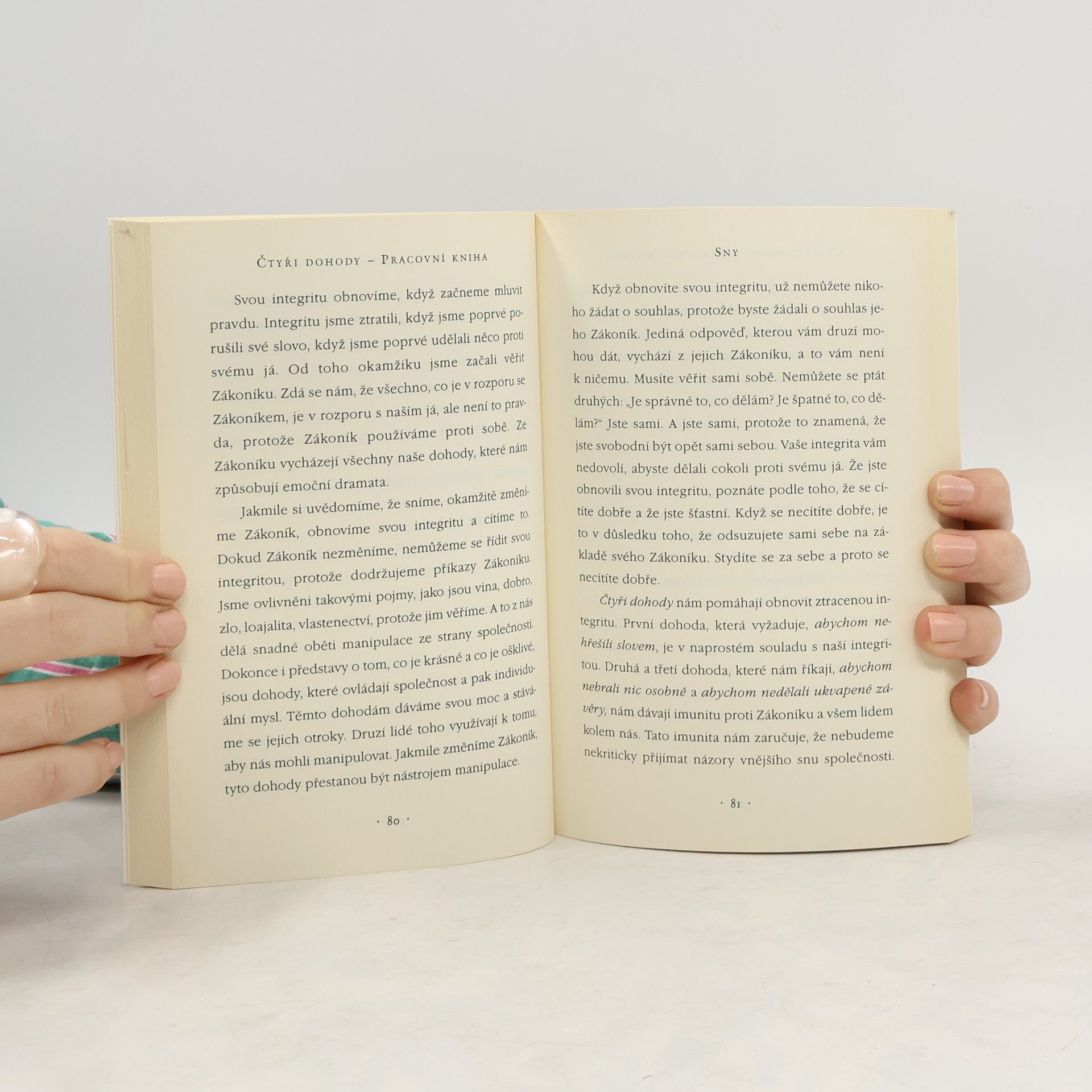 Čtyři dohody seznámily čtenáře s jednoduchým, ale mocným kódem chování, které vám pomůže dosáhnout osobní svobodu a opravdové štěstí. Tato další kniha vás dovede ještě dál na cestě k obnovení vědomí a moudrosti vašeho autentického já. Knihu si musí přečíst nejen ti, kterým se líbila Miguelova první kniha, ale také ti, kteří se chtějí zbavit utrpení a kteří chtějí žít v přirozeném lidském stavu: štěstí.