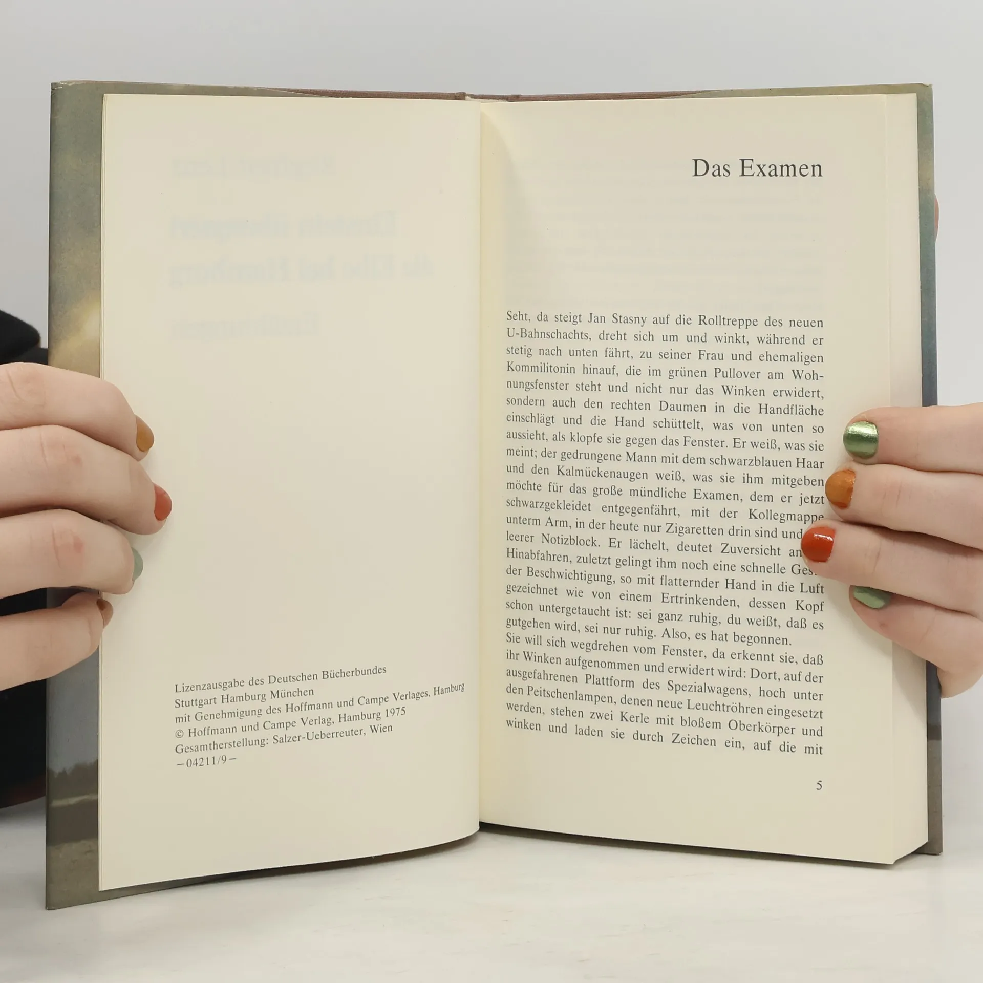 Ein sommerliches Hafenporträt zeigt die alltägliche Wahrheit des Stroms – Möwen, Rauchfahnen, Wind und die Schiffe samt der Personen an Deck: Der Kapitän, der den Kurs eines nahenden Schleppzugs abschätzt, ein Fliehender, der von einem Uniformierten verfolgt wird, eine hochschwangere Frau im Schatten der Reling. Und abseits ein alter Mann mit Schlapphut, Pfeife rauchend – Albert Einstein? Eine Hafenszene, in deren Mittelpunkt ein grünweißes Fährschiff steht, heraufbeschworen von einem Beobachter, der »selbst bestimmt, was eine Tatsache ist«.