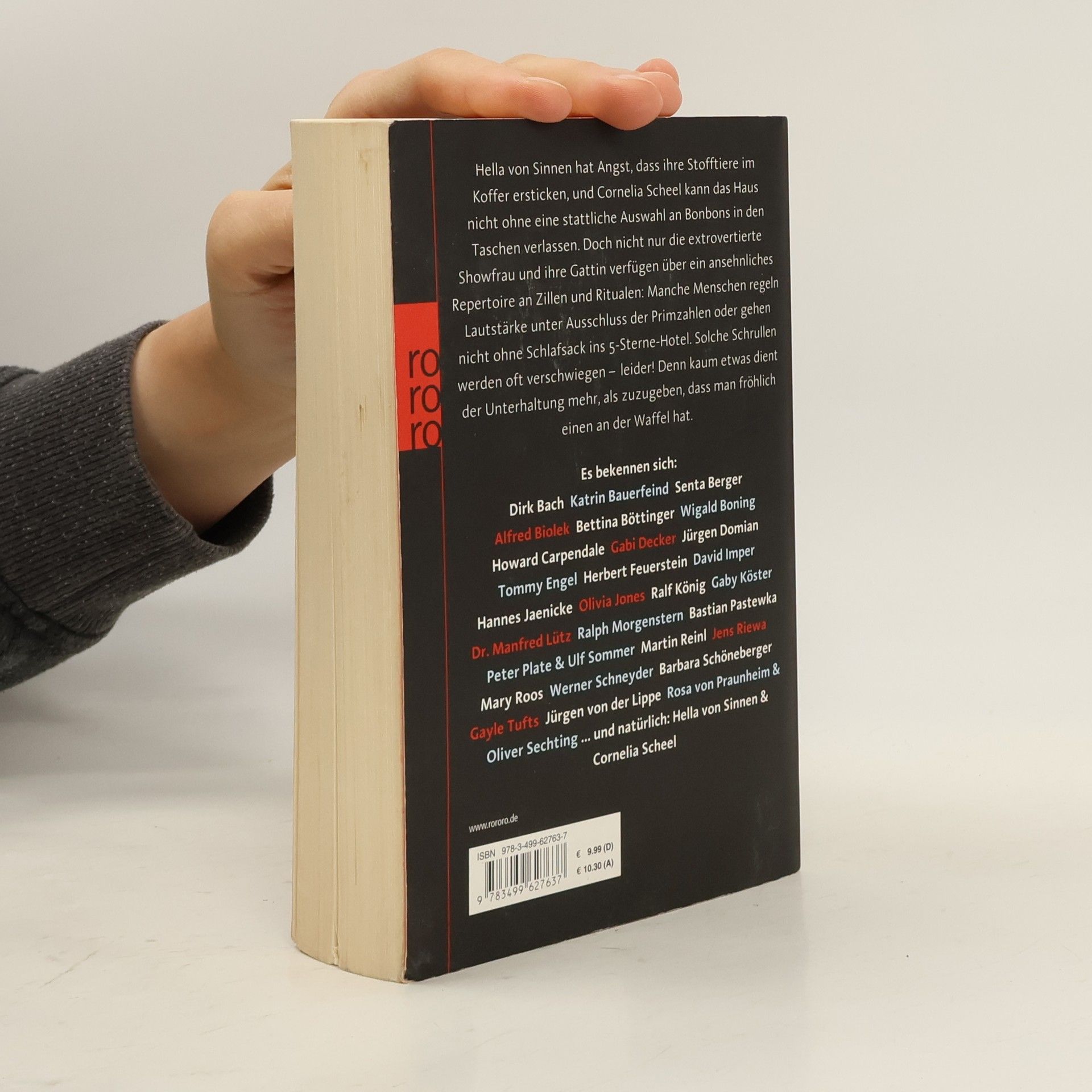 Hella von Sinnen hat Angst, dass ihre Stofftiere im Koffer ersticken, und Cornelia Scheel kann das Haus nicht ohne eine stattliche Auswahl an Bonbons in den Taschen verlassen. Doch nicht nur die extrovertierte Showfrau und ihre Gattin verfügen über ein ansehnliches Repertoire an Zillen und Ritualen: Manche Menschen regeln Lautstärke unter Ausschluss der Primzahlen oder gehen nicht ohne Schlafsack ins 5-Sterne-Hotel. Solche Schrullen werden oft verschwiegen – leider! Denn kaum etwas dient der Unterhaltung mehr, als zuzugeben, dass man fröhlich einen an der Waffel hat.Es bekennen sich: Dirk Bach Katrin Bauerfeind Senta Berger Alfred Biolek Bettina Böttinger Wigald Boning Howard Carpendale Gabi Decker Jürgen Domian Tommy Engel Herbert Feuerstein David Imper Hannes Jaenicke Olivia Jones Ralf König Gaby Köster Dr. Manfred Lütz Ralph Morgenstern Bastian Pastewka Peter Plate & Ulf Sommer Martin Reinl Jens Riewa Mary Roos Werner Schneyder Barbara Schöneberger Gayle Tufts Jürgen von der Lippe Rosa von Praunheim & Oliver Sechting ... und natürlich: Hella von Sinnen & Cornelia Scheel