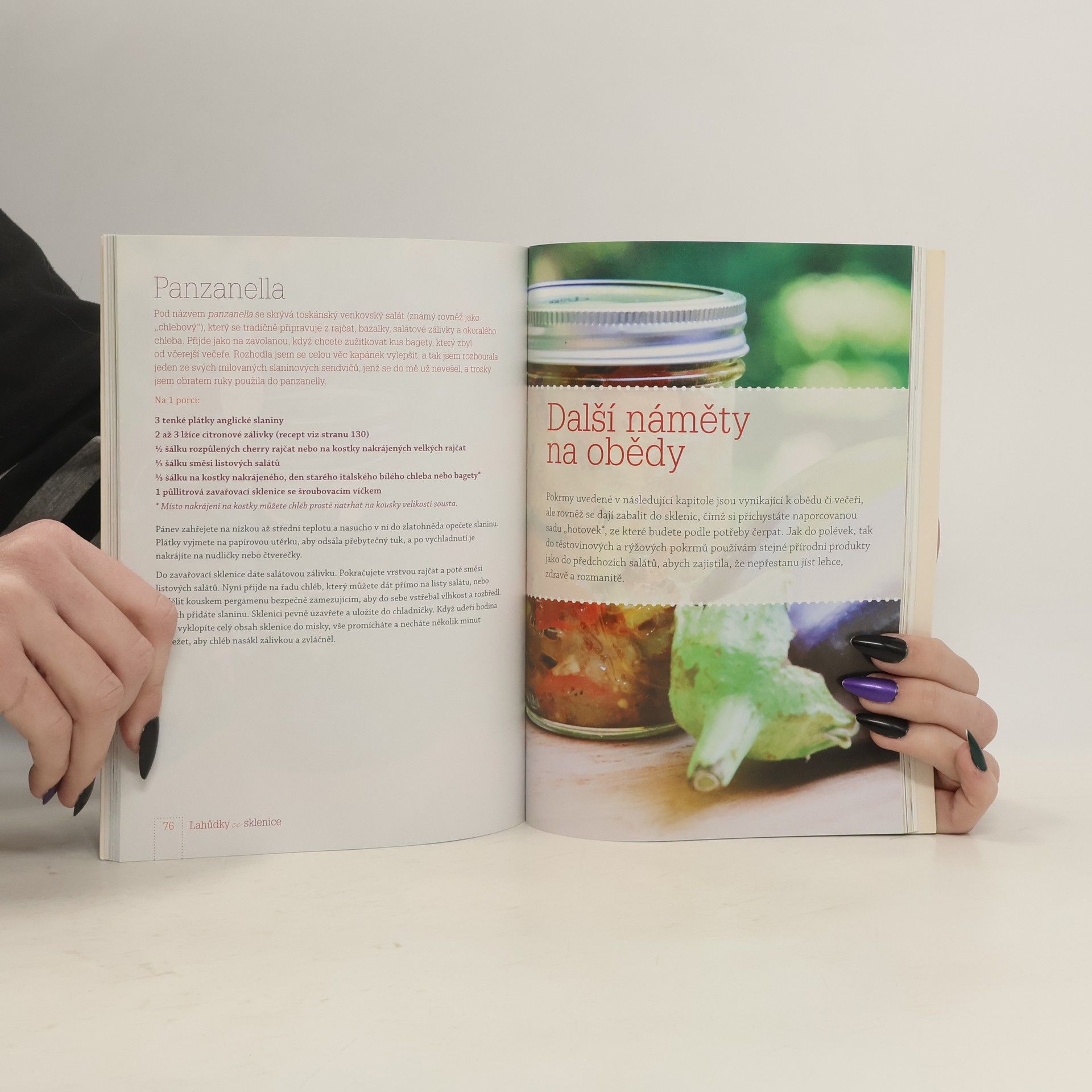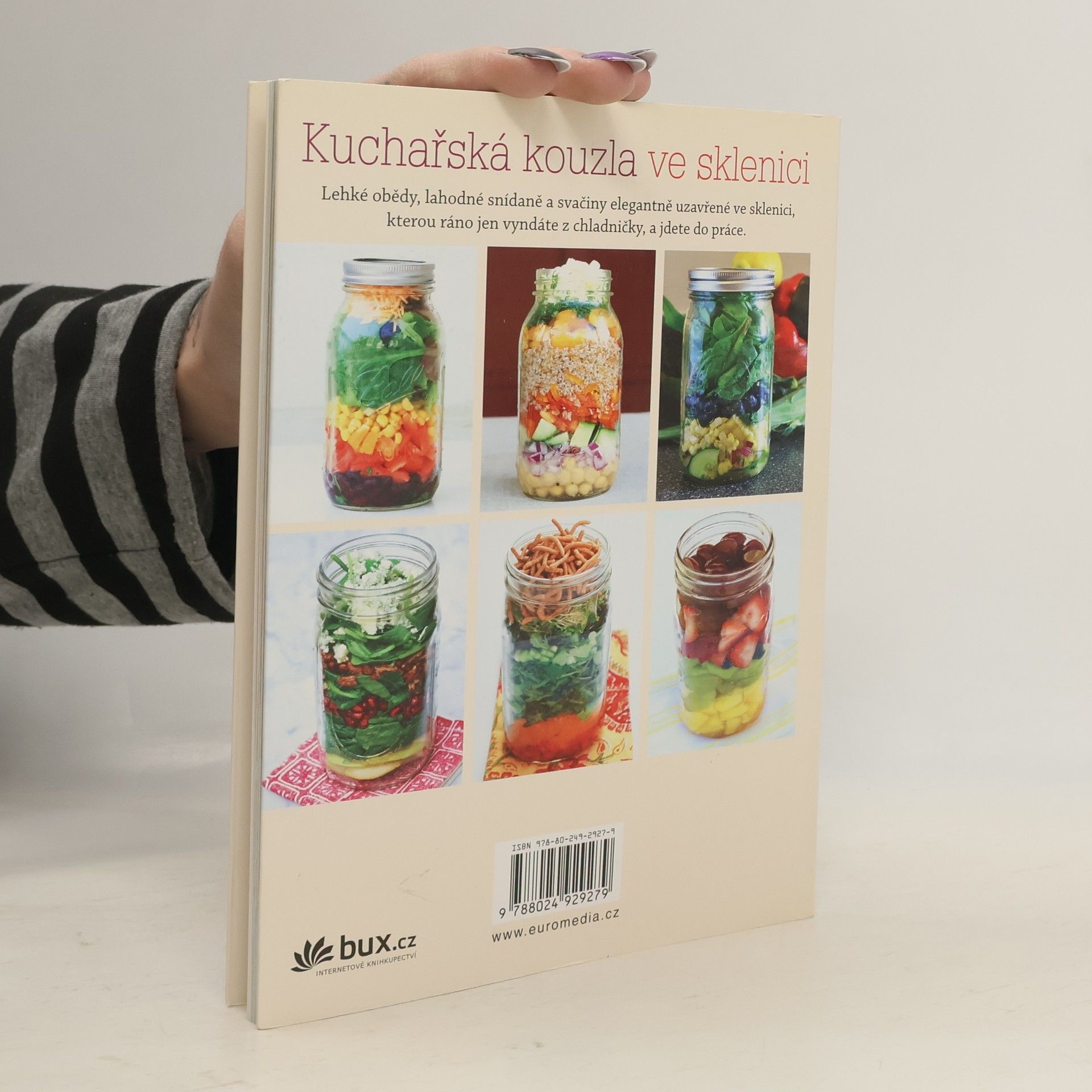 Tato kniha přináší jednoduché a rafinovaně zabalené obědy na každý pracovní den. Nepotřebujete nic jiného, než zavařovací sklenici a několik surovin, abyste byli schopni vrstvením vykouzlit skvělé jídlo, které se po otočení sklenice vzhůru nohama promísí a jednotlivé chutě se spojí v lahodný celek. Takto si můžete připravit nejen svěží saláty, ale i těstoviny či dušená jídla a dezerty.