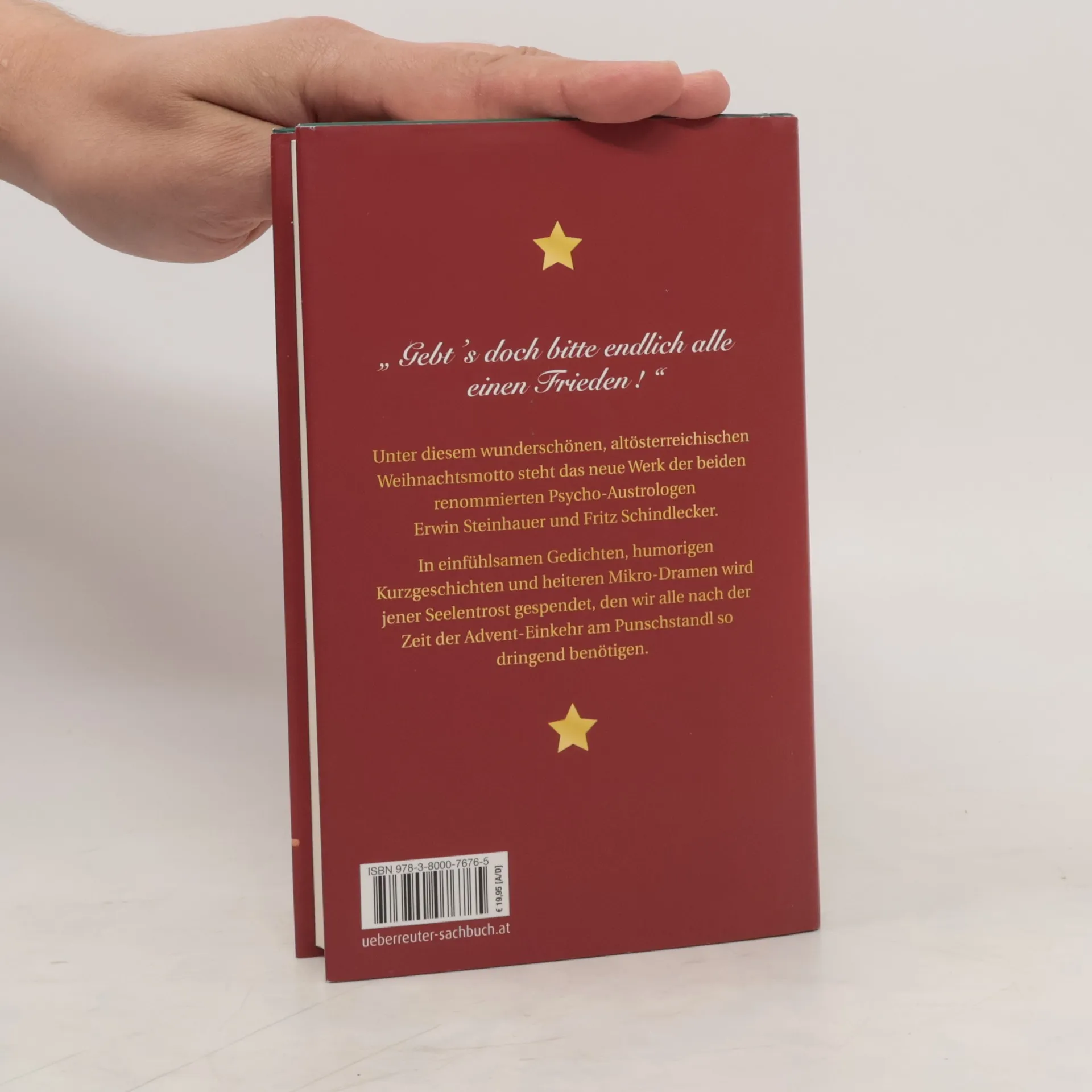 Gebt's doch bitte endlich alle einen Frieden!„ Unter diesem wunderschönen, altösterreichischen Weihnachtsmotto steht das neue Werk der beiden renommierten Psycho-Austrologen Erwin Steinhauer und Fritz Schindlecker. In einfühlsamen Gedichten, humorigen Kurzgeschichten und heiteren Mikro-Dramen wird jener Seelentrost gespendet, den wir alle nach der Zeit der Advent-Einkehr am Punschstandl so dringend benötigen. Nach dem Bestseller “Wir sind super!„, der vielen über die Depression nach der vergeigten Fußball-Europameisterschaft hinweghalf, zaubern nun die “Föhlichen Weihnachterln" ein seliges Kinderlächeln in die wettergegerbten Antlitze heimischer Schi-, Rodel- und SchreibtischathletInnen.