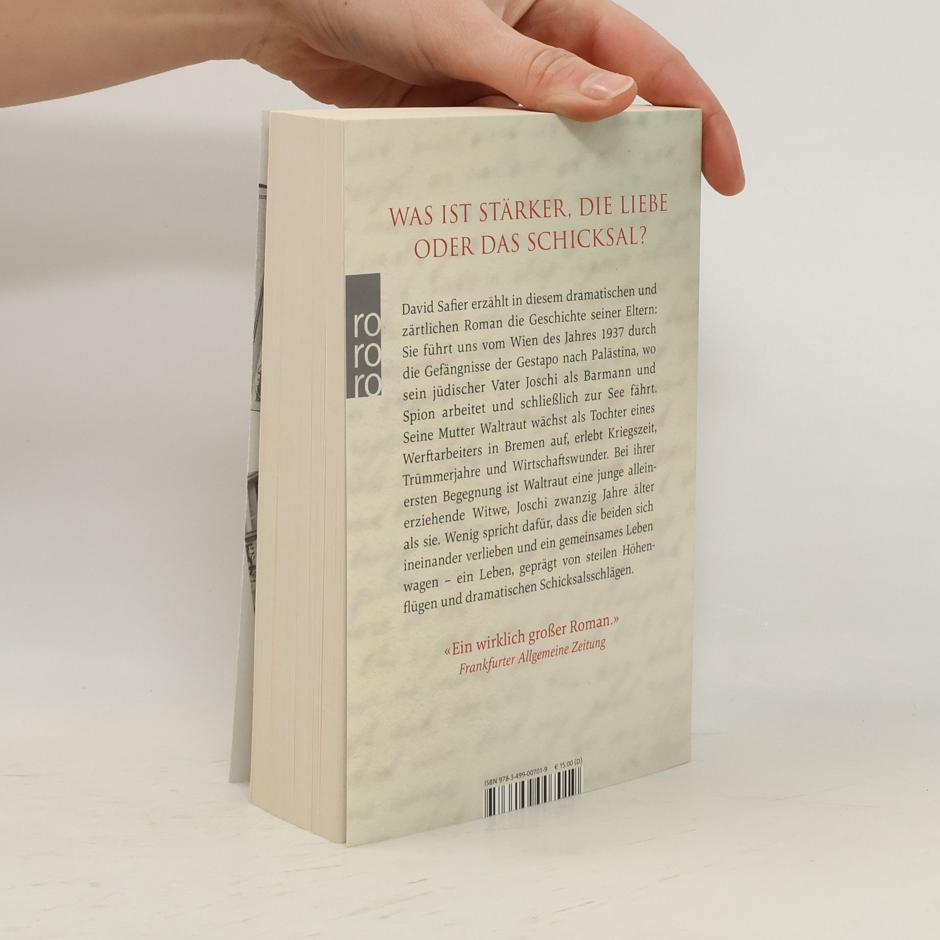 In diesem bewegenden Roman von David Safier wird die Geschichte seiner Eltern erzählt, die von Wien 1937 über Gestapo-Gefängnisse bis nach Palästina führt. Waltraut, eine junge Witwe, und der viel ältere Joschi erleben eine unerwartete Liebe inmitten von Krieg und Umbrüchen, geprägt von Höhen und Tiefen.