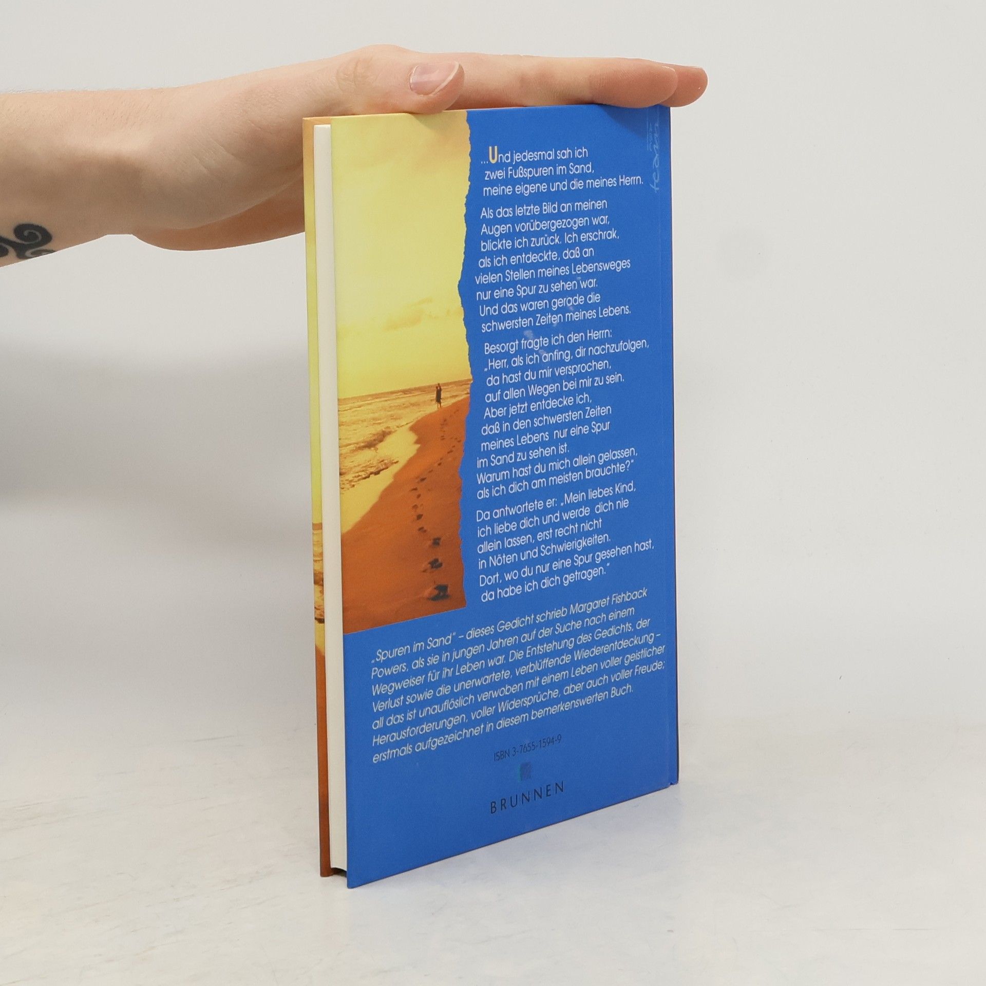 Dieses Gedicht schrieb M. Fishback Powers in einer tiefen Lebenskrise. Bevor sie an Gott und der Welt verzweifelt, bekommt sie die Antwort: „Mein liebes Kind, ich liebe dich und werde dich nie allein lassen, erst recht nicht in Nöten und Schwierigkeiten. Dort, wo du nur eine Spur gesehen hast, da habe ich dich getragen.“" Lesen Sie hier das Gedicht und seine Geschichte: Die Entstehung des Gedichts, der Verlust sowie die unerwartete Wiederentdeckung - als das ist unauflöslich verwoben mit einem Leben voller geistlicher Herausforderungen, voller Widersprüche, aber auch voller Freude.
