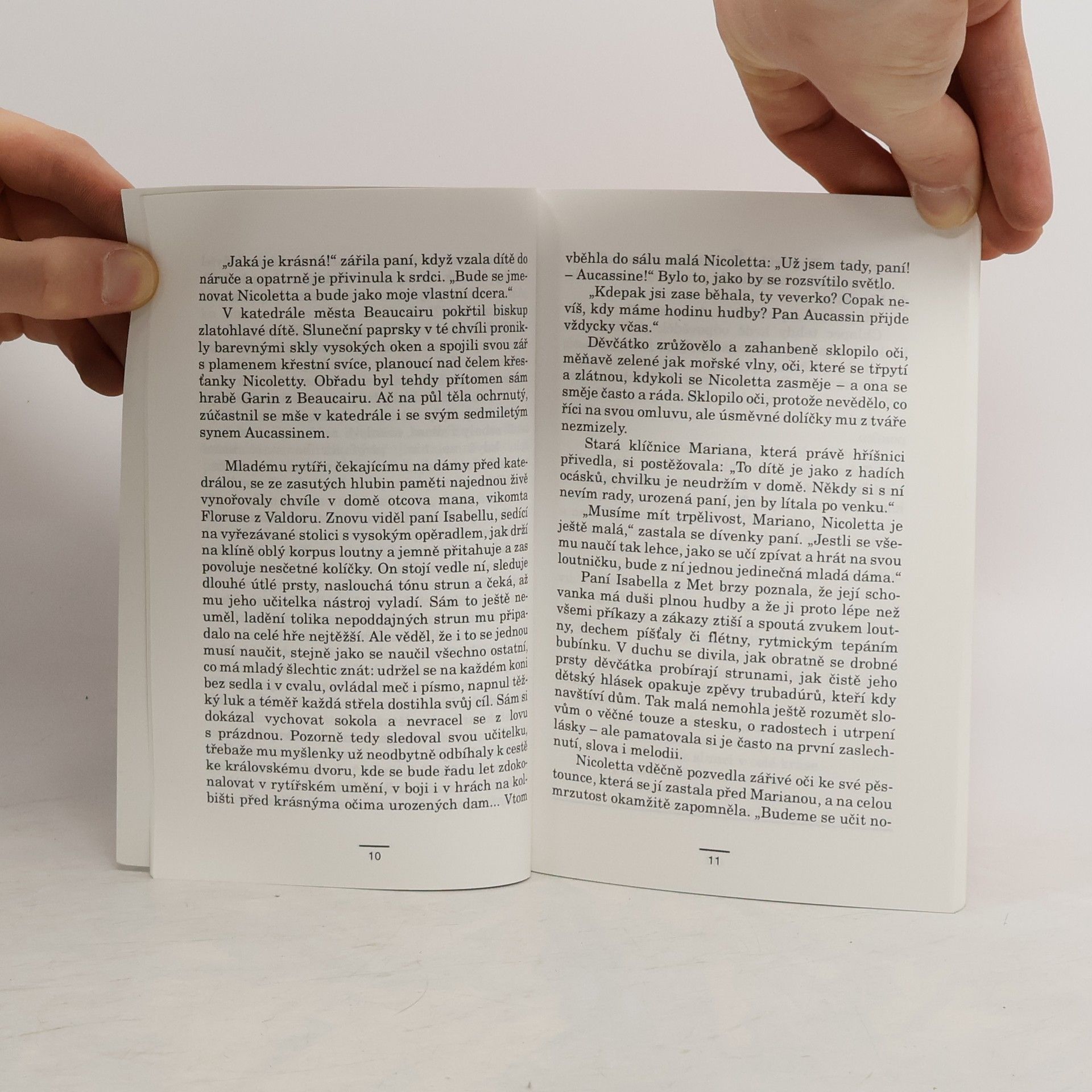 Spisovatelka v knize vypravuje starou evropskou milostnou látku v podobě příběhu s dívčí hrdinkou. Čtenářky, a jistě nejen ty mladé, kterým je kniha především určena, budou s napětím sledovat dobrodružství krásné dívky Nicoletty, její lásku k Aucassinovi, její obtíže a nesnáze i šťastné rozuzlení romantické historie.