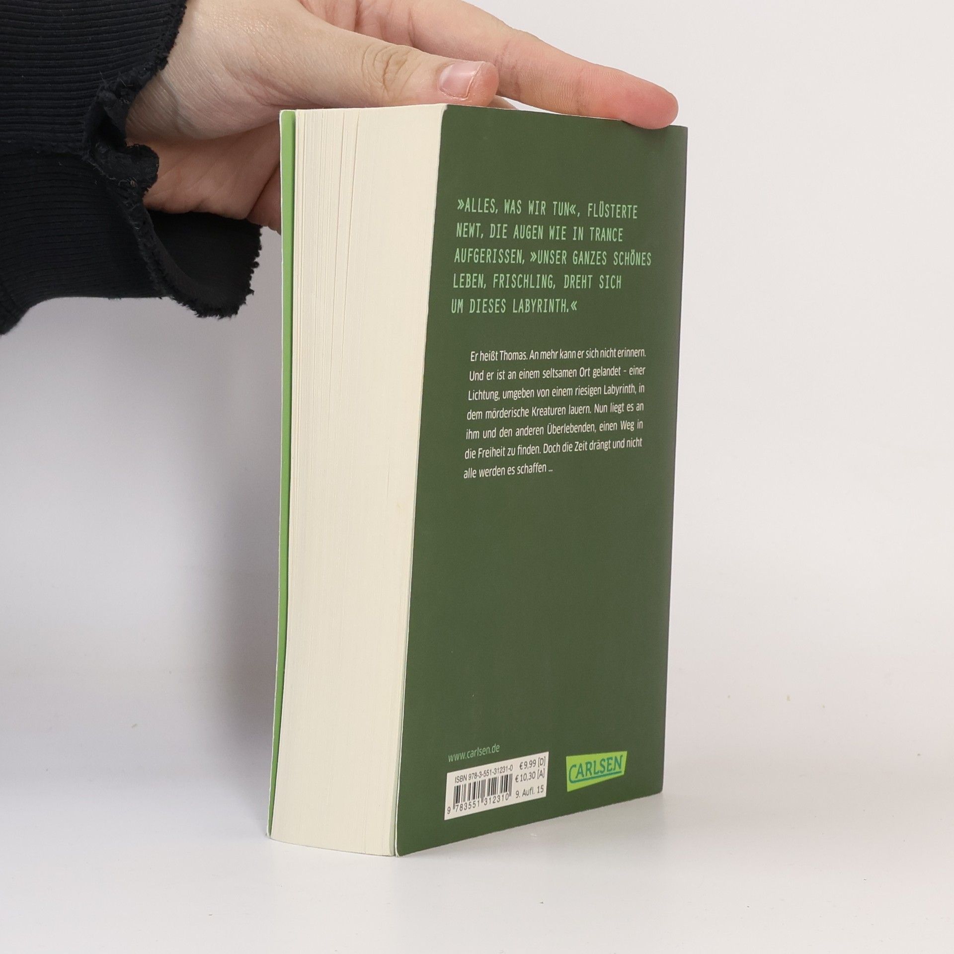 Sein Name ist Thomas. An mehr kann er sich nicht erinnern. Fest steht, dass er irgendwie auf einer Lichtung gelandet ist, umgeben von einem bizarren Labyrinth. Doch er ist nicht alleine. Zusammen mit fünfzig anderen Jungen sucht er einen Weg in die Freiheit. Mörderische Kreaturen erwarten sie – und gewaltige Mauern, die sich ständig verschieben. Ist das Ganze eine Prüfung? Und wer hat sich dieses grauenvolle Szenario ausgedacht? Den Jungen bleibt nicht viel Zeit, um das herauszufinden.