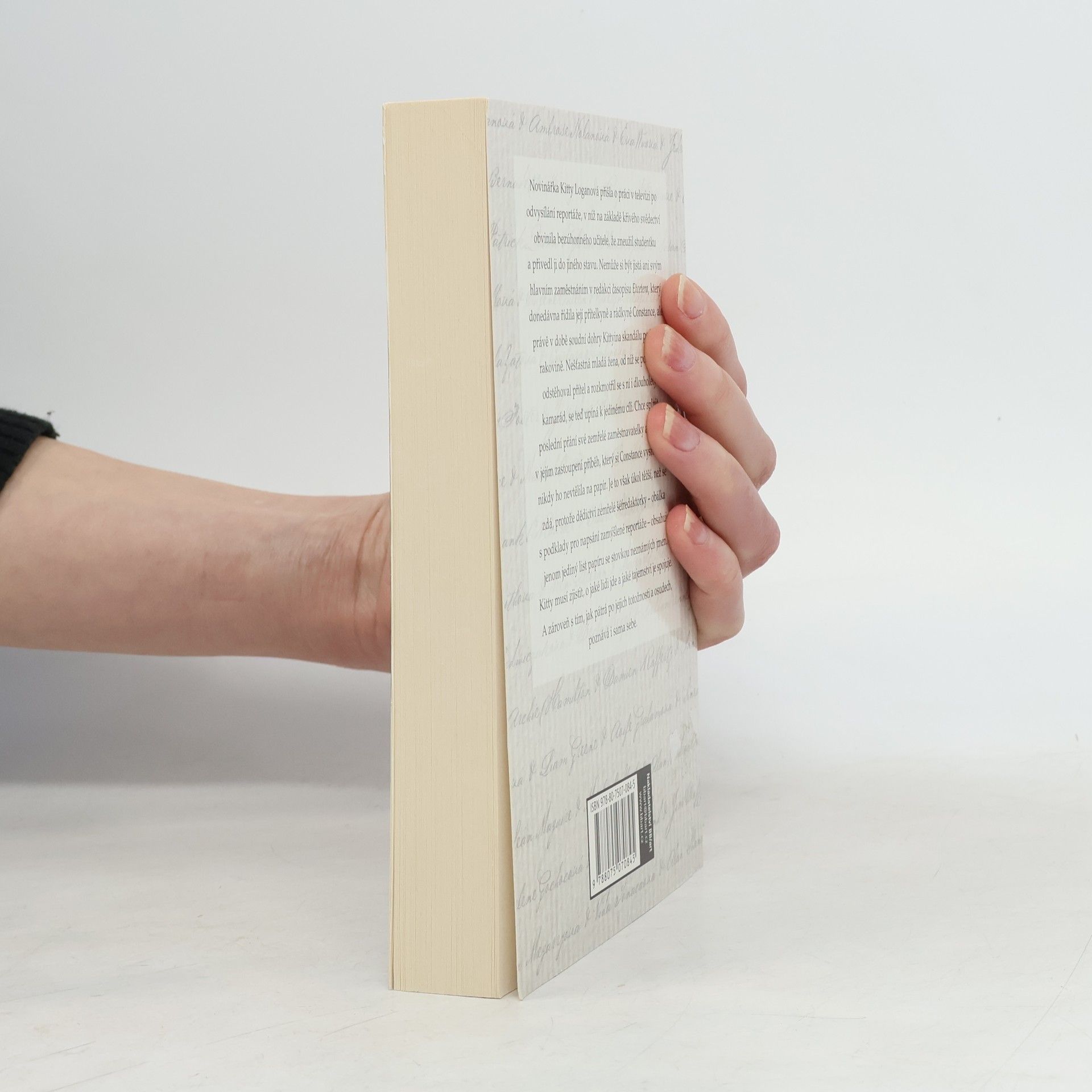 Novinářka Kitty Loganová přišla o práci v televizi po odvysílání reportáže, v níž na základě křivého svědectví obvinila bezúhonného učitele, že zneužil studentku a přivedl ji do jiného stavu. Nemůže si být jistá ani svým hlavním zaměstnáním v redakci časopisu Etcetera, který donedávna řídila její přítelkyně a rádkyně Constance, ale právě v době soudní dohry Kittyina skandálu podlehla rakovině. Nešťastná mladá žena, od níž se po aféře odstěhoval přítel a rozkmotřil se s ní i dlouholetý kamarád, se teď upíná k jedinému cíli. Chce splnit poslední přání své zemřelé zaměstnavatelky a napsat v jejím zastoupení příběh, který si Constance vysnila, ale nikdy ho nevtělila na papír. Je to však úkol těžší, než se zdá, protože dědictví zemřelé šéfredaktorky – obálka s podklady pro napsání zamýšlené reportáže – obsahuje jenom jediný list papíru se stovkou neznámých jmen. Kitty musí zjistit, o jaké lidi jde a jaké tajemství je spojuje. A zároveň s tím, jak pátrá po jejich totožnosti a osudech, poznává i sama sebe.