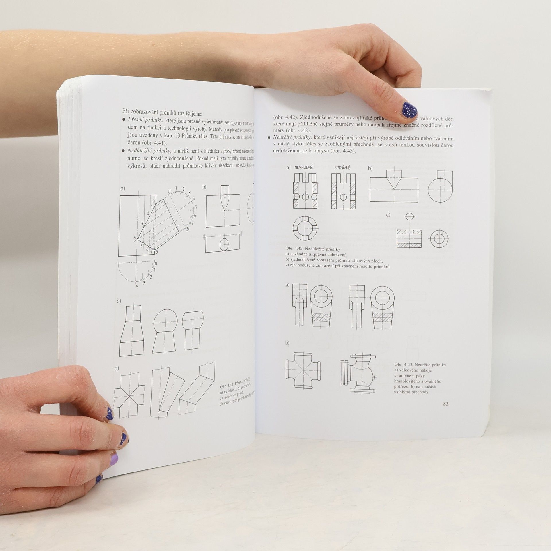 Úvod je věnován orientaci čtenáře v uspořádání národních i mezinárodních norem EN a ISO s ohledem na jejich aplikaci při vytváření technické dokumentace. Čtenář je seznámen s výběrem a používáním kreslicích pomůcek, prováděním geometrických konstrukcí a jejich využitím, s kreslením náčrtů a zásadami technického zobrazování. Na tyto zásady navazuje způsob udávání rozměrů na výkresech, předepisování jejich přesnosti, tvaru a polohy i jakosti povrchu strojních součástí. Získané znalosti jsou využívány a rozvinuty v kapitole věnované kreslení strojních součástí a spojů a při provádění výrobních výkresů. V druhé části učebnice je zpracována učební osnova předmětu určená deskriptivní geometrii. Je členěna na pravoúhlé promítání na dvě k sobě kolmé průmětny, sestrojování sítí těles a řešení jejich průniků. Text doplňuje výběr rovinných křivek se zaměřením na technické aplikace ozubených kol, mechanismů a jejich trajektorií. Deskriptivní geometrii uzavírá kapitola věnovaná řešení úloh v prostorových zobrazeních. Učivo je zpracováno podle platných pravidel a zásad technického kreslení zakotvených v ČSN a převzatých normách EN a ISO. Text je doplněn řešenými příklady a úlohami na procvičení a ověření znalostí. Učebnice je určena žákům středních odborných škol, vysokých škol technického zaměření i technickou praxi.
