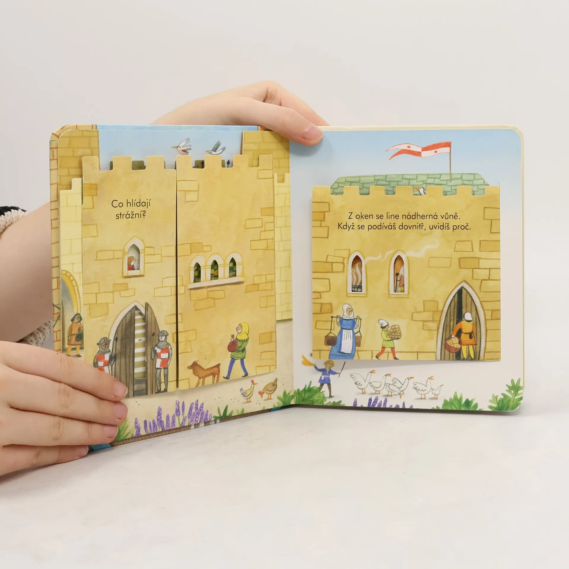 Na královském hrade je pořádně živo. Všichni někam pospíchají a mají moc práce. Otevři všechna okénka v této knížce, podívej se pod ně a uvidíš, co objevíš!